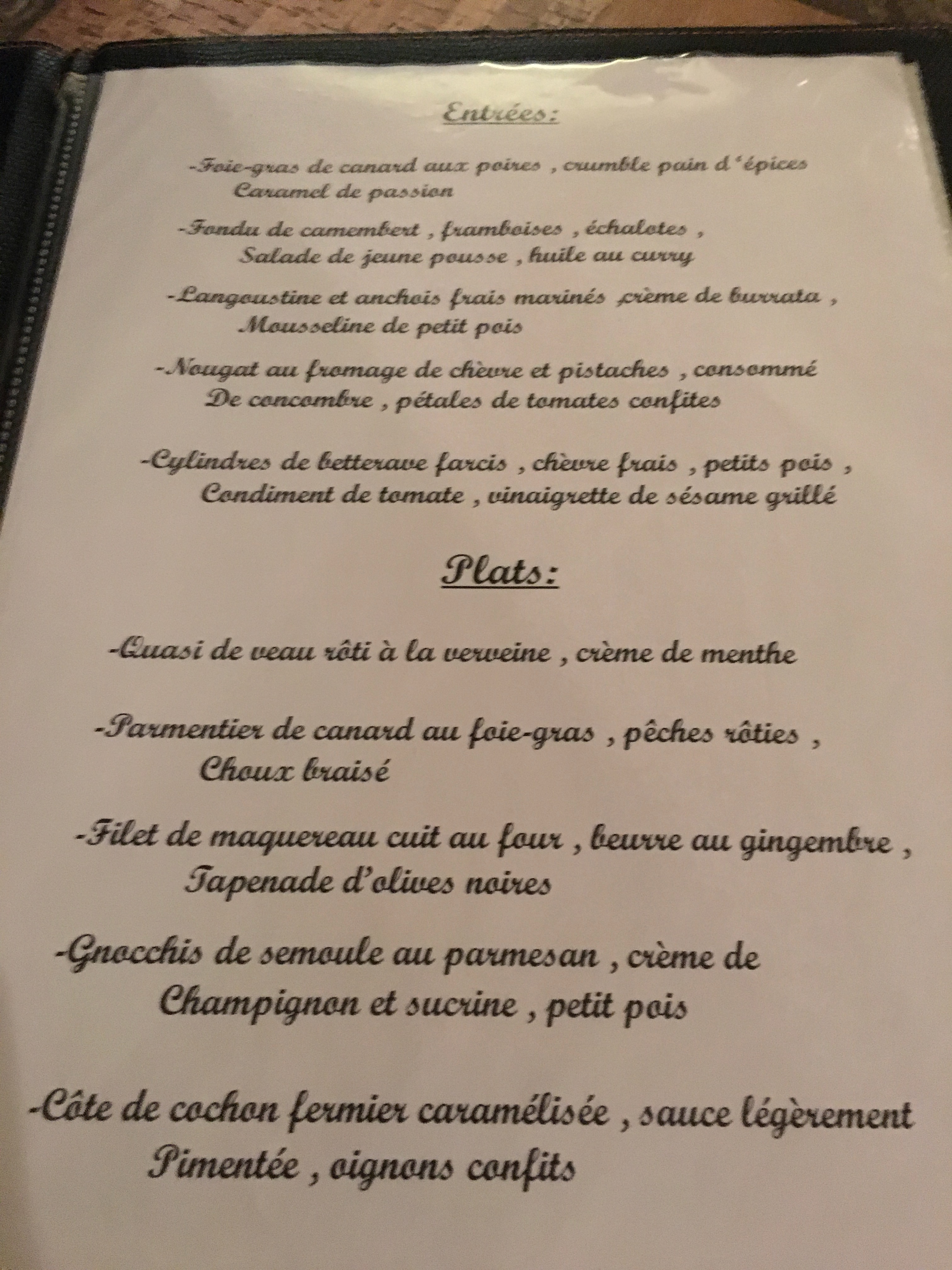 L’Alchimiste Menu