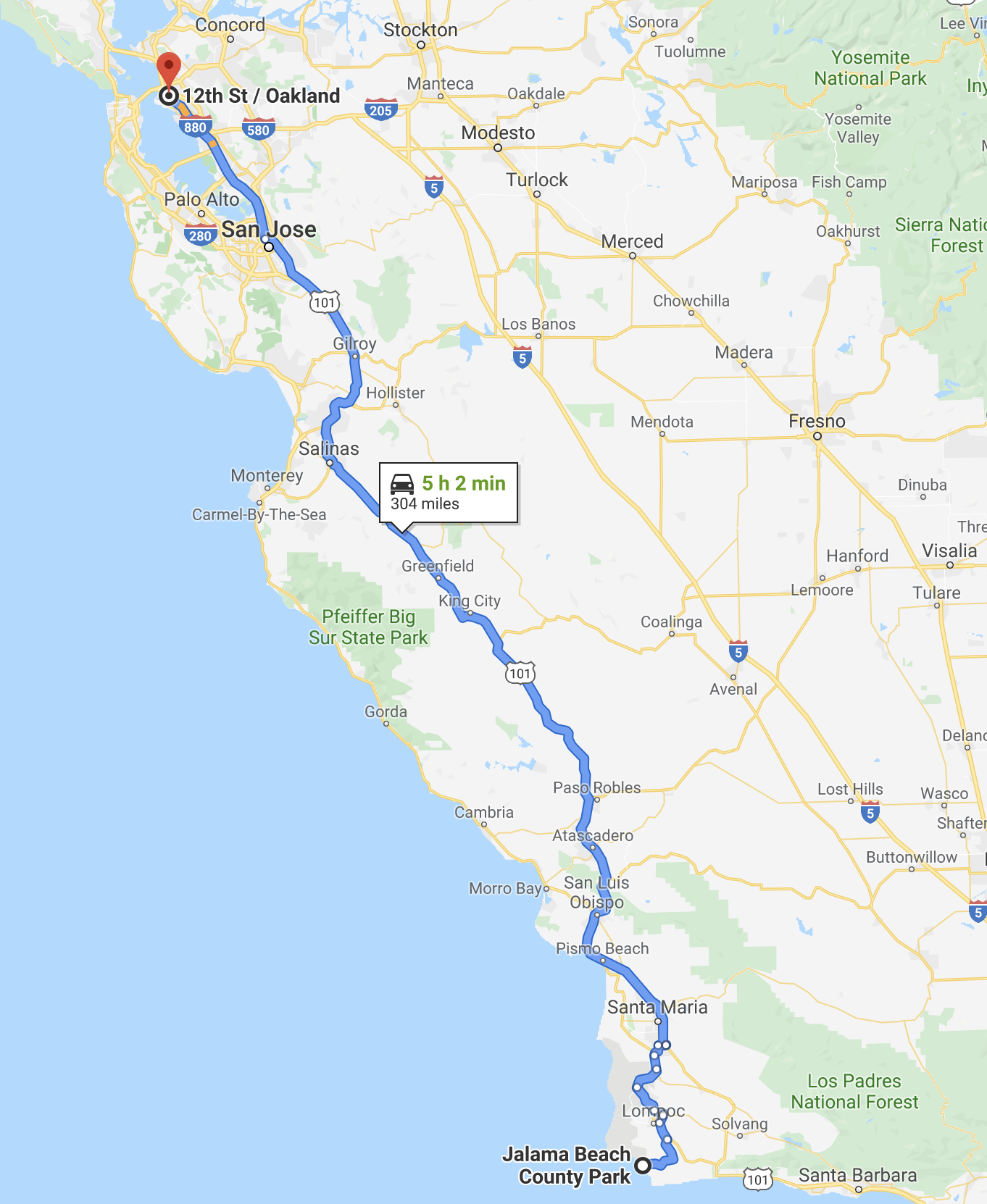 Jalama to Oakland