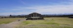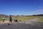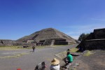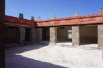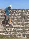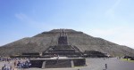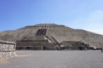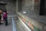 Detail of the pyramid, showing the alternating “Tlaloc” (left) and feathered serpent (right) heads.