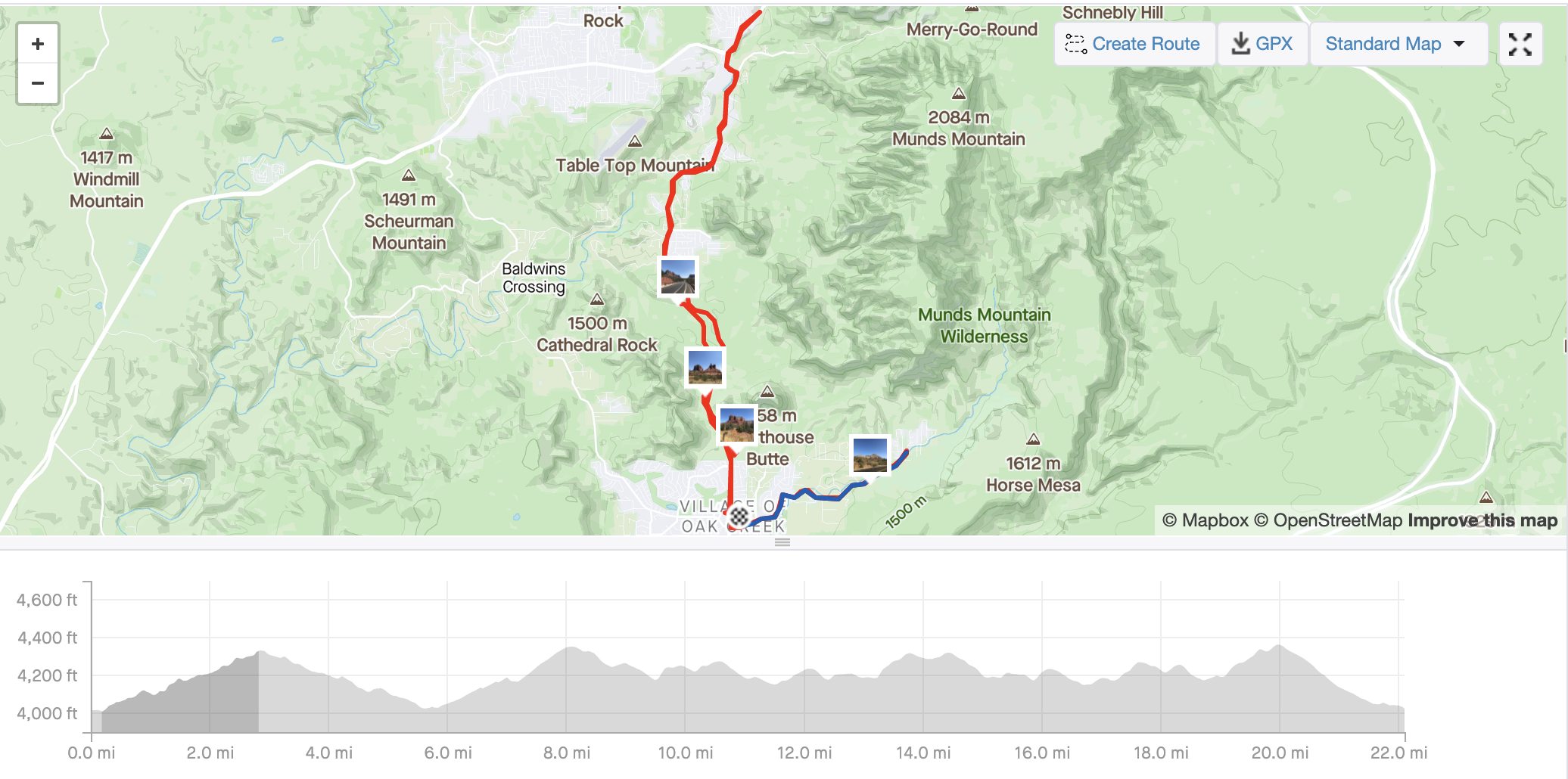 One of our goals for the two full days we’d spend here was to get in some bike riding and so after breakfast we took off to do some exploring, first riding up Jack’s Canyon Road just outside the condo for six miles or so before turning around and hitting Highway 179 which took us into Sedona proper.