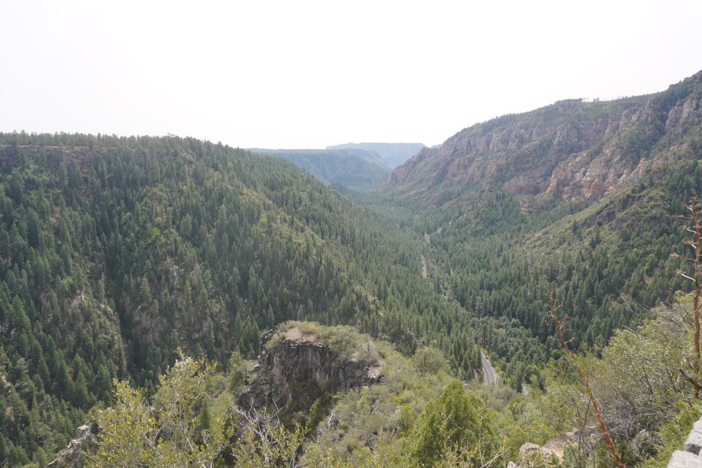 Finished with our meal, we got back on the road and began the drive to Flagstaff and we wound our way up Highway 89A through Oak Creek Canyon. As it was a Saturday, there was a lot of traffic on the road, which was lined on both sides with parked cars, particularly as we got close to the very popular Slide Rock State Park.