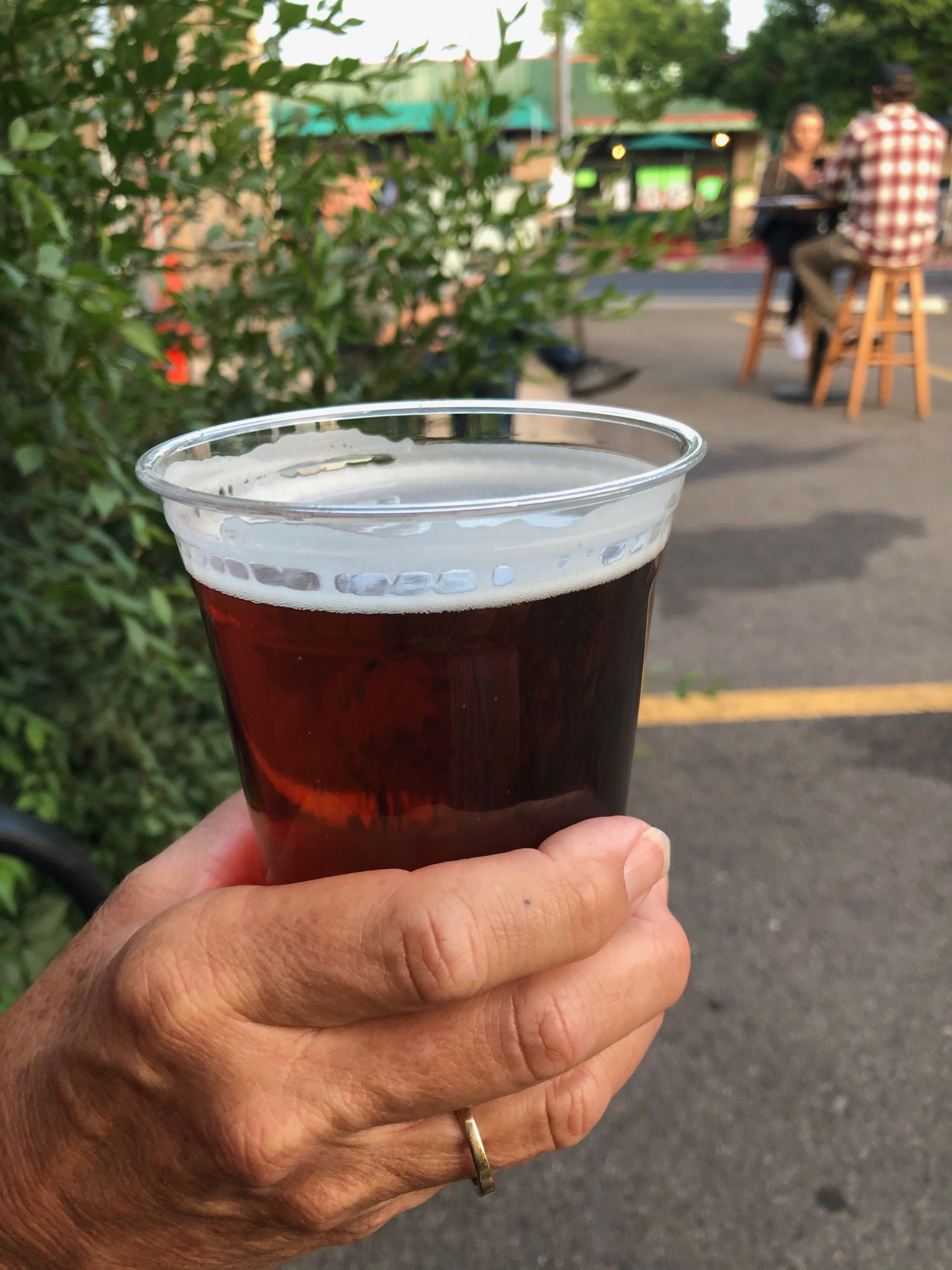 For dinner, following a recommendation from Evan, we walked a few blocks towards the University (Northern Arizona) to Beaver Street Brewery. Upon arrival we were advised of a reasonable wait to be seated, so we ordered a couple of beers and went outside to enjoy them, socially distanced from some high tops and a few scattered benches.