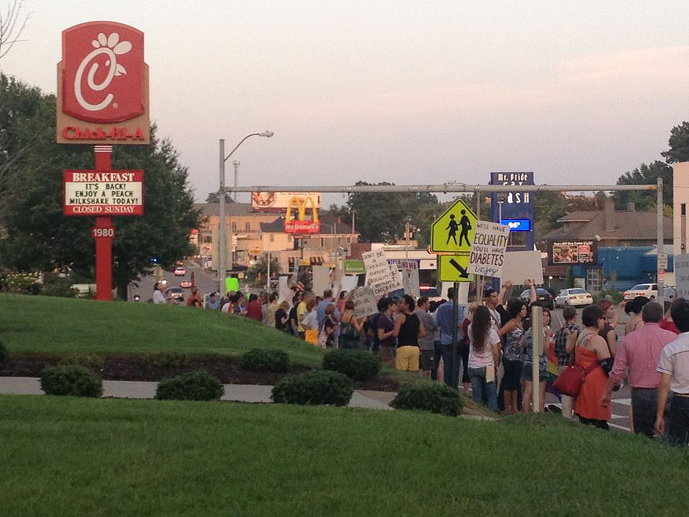 The tweet was subsequently deleted, and in March 2014, Cathy said he regretted drawing his company into the controversy, telling the Atlanta Journal-Constitution he has been working with Shane Windmeyer of Campus Pride since 2012. The article noted that the Chick-fil-A Foundation had “dramatically” cut donations to groups opposed by same-sex marriage supporters.