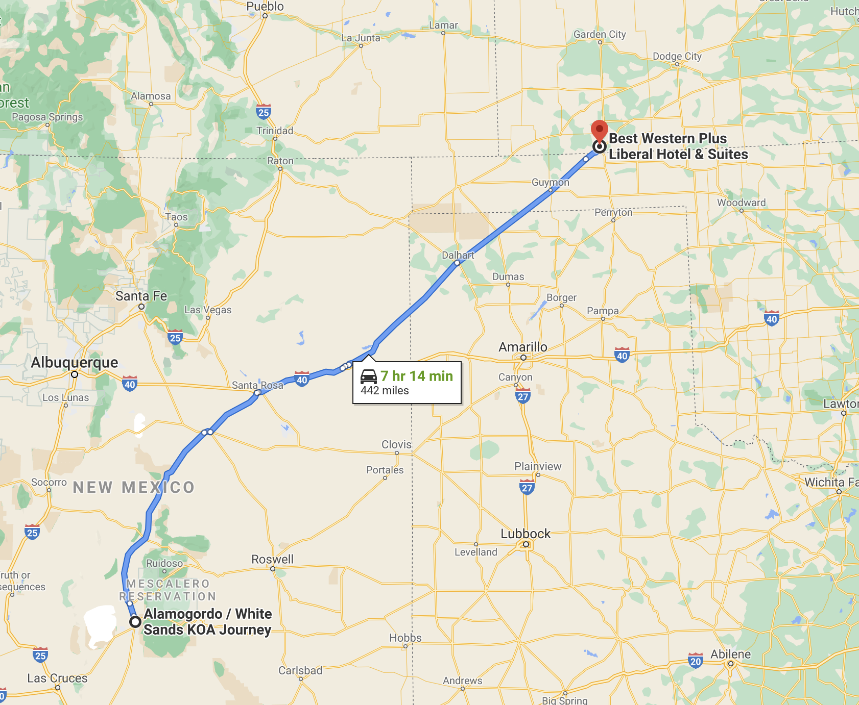 Our stop for the night was the BW Plus Liberal Hotel & Suites, the Budget Host location we’d used in the prior visit not available this time around. We checked in and began to explore our options for dinner but as we were sitting at the outskirts of the north side of town, the choices were limited. Not anxious to get back in the car after a day of driving we opted for just about anything that could be delivered and that turned out to be a pie from Pizza Hut. Not the best or the worst we’ve ever consumed, just food in the room to end the day.