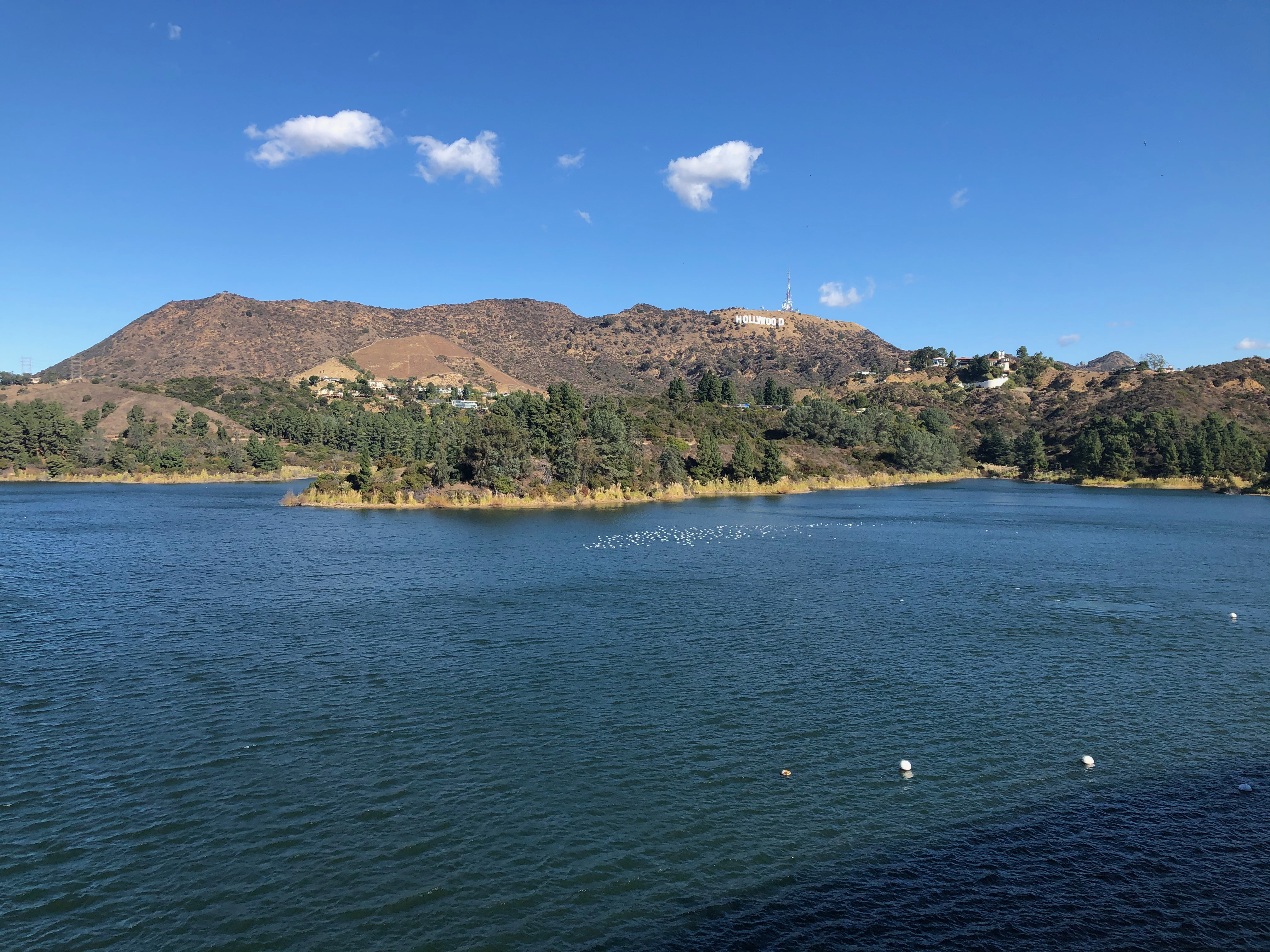 Two days later we set out with our friend Heather to climb up Nichols Canyon to Mulholland Drive with the intent to head to the valley from there and return over Sepulveda Pass. Incredibly high winds put the kibosh on that idea and so we opted instead to reroute to the Hollywood Reservoir and its stunning views of the Hollywood sign.