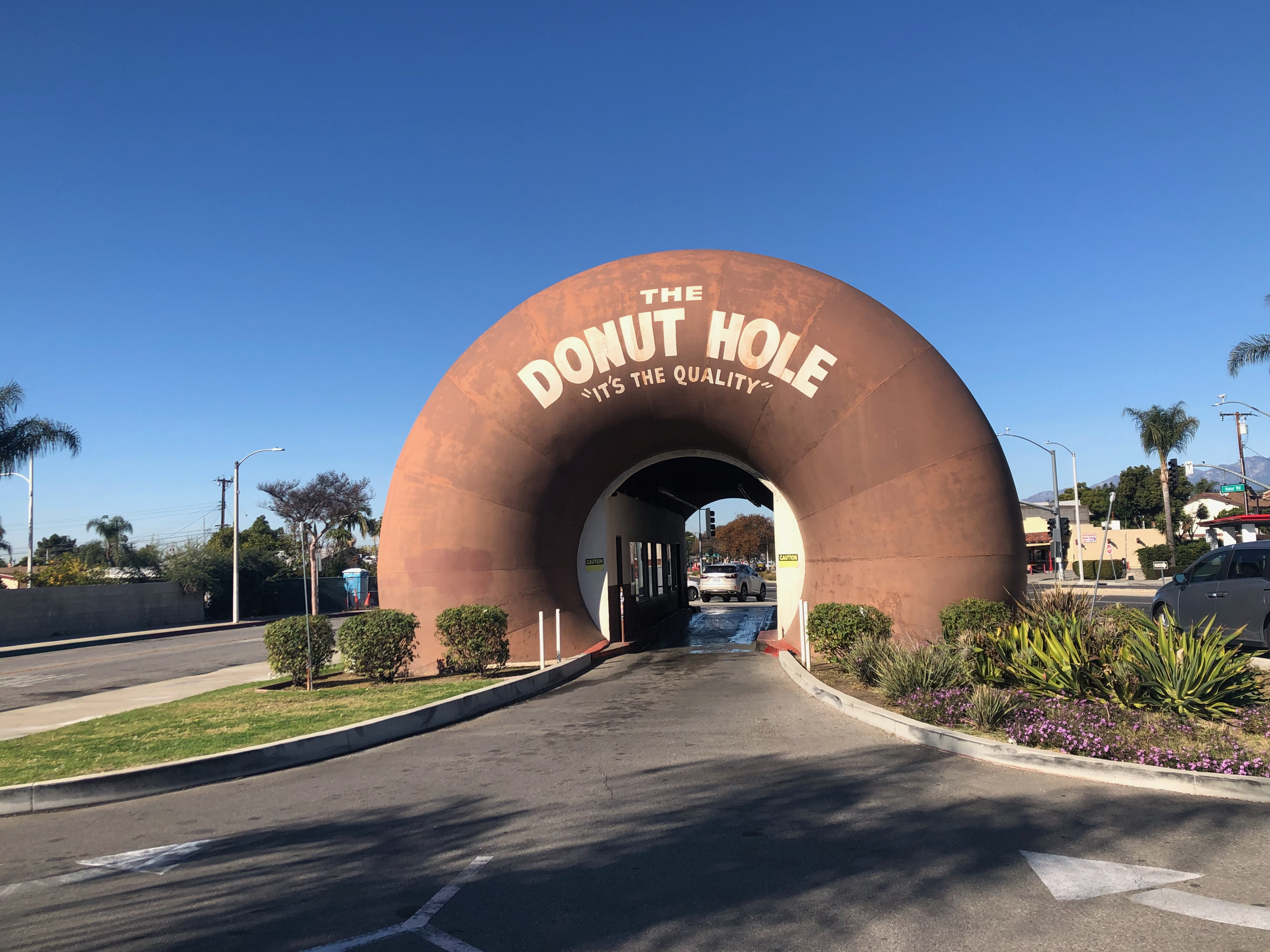To change things up a couple of weeks into the new year, we took a half day road trip based on a post from Atlas Obscura, Rogue Routes: The Road to Sky’s the Limit. We would just do the first part of the route as far as Riverside, as the second half involved a much longer drive out to the Palm Springs area. Our first stop was The Donut Hole in La Puente, built in 1968 and in continuous operation as a donut shop ever since.