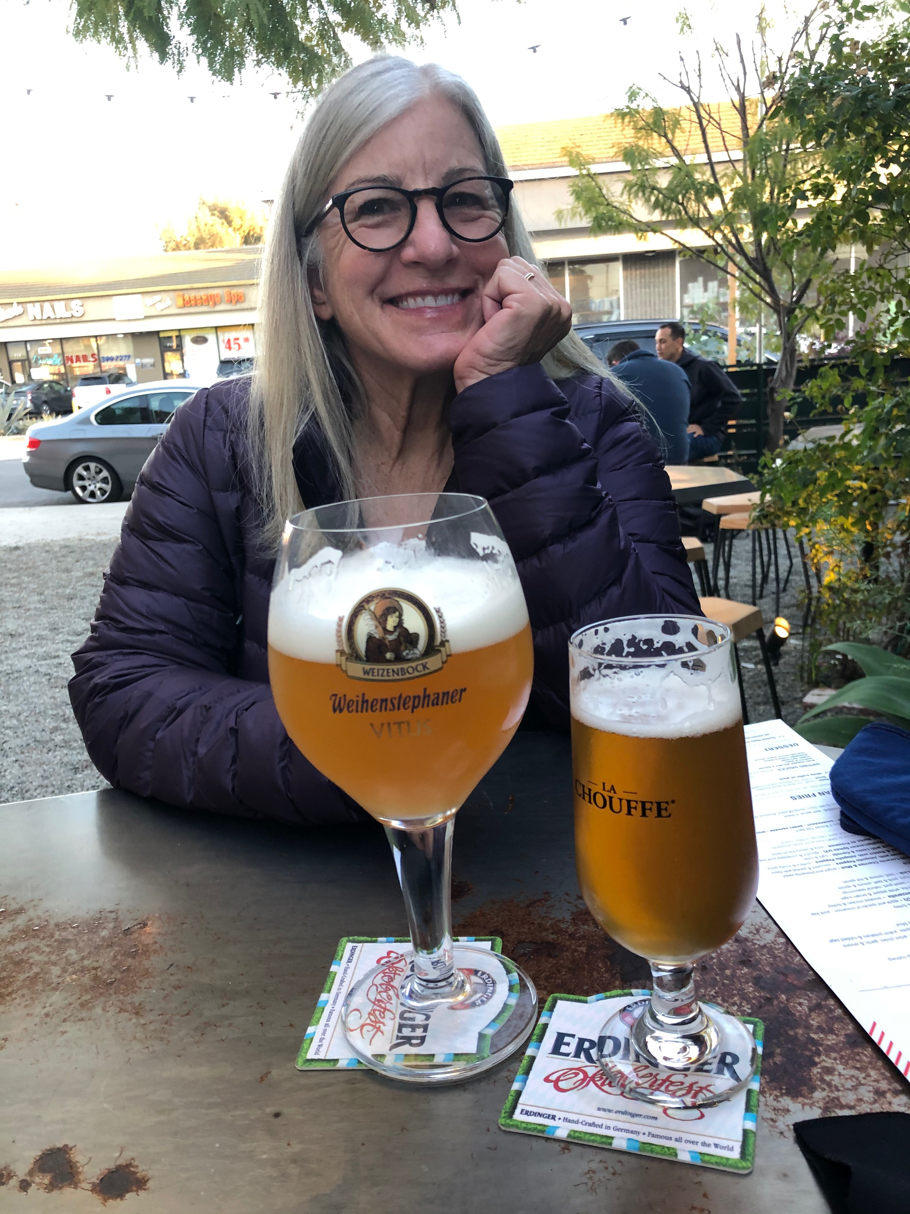 The first of those is the Wurstkuche on Lincoln Blvd. in Venice (they have a sister venue in downtown Los Angeles). We arrived just after they opened at 5:00pm and grabbed a table in the patio at the back of the restaurant. One goes inside to order, the empty interior with tables and chairs stacked hinting at the vibrancy the indoor location must deliver when we can gather indoors. Joanna started with a Vitus Weizenbock (7.7% ABV) and I a La Chouffe strong blonde ale (8% ABV) for me. This is a fine as way to start the evening as any I can think of each sip of a Belgian takes me to Brussels, or Bruges, or some other European spot where a Belgian is the micro-brew most likely available.