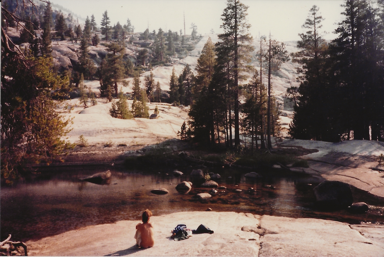On our second day of hiking, we stopped for a while on a broad, smooth bank of granite beside the Merced River to take a dip and wash the dust off of our bodies. It was cold in a refreshing way and provided a much-needed break in the routine of hiking mile after mile with weighted packs.