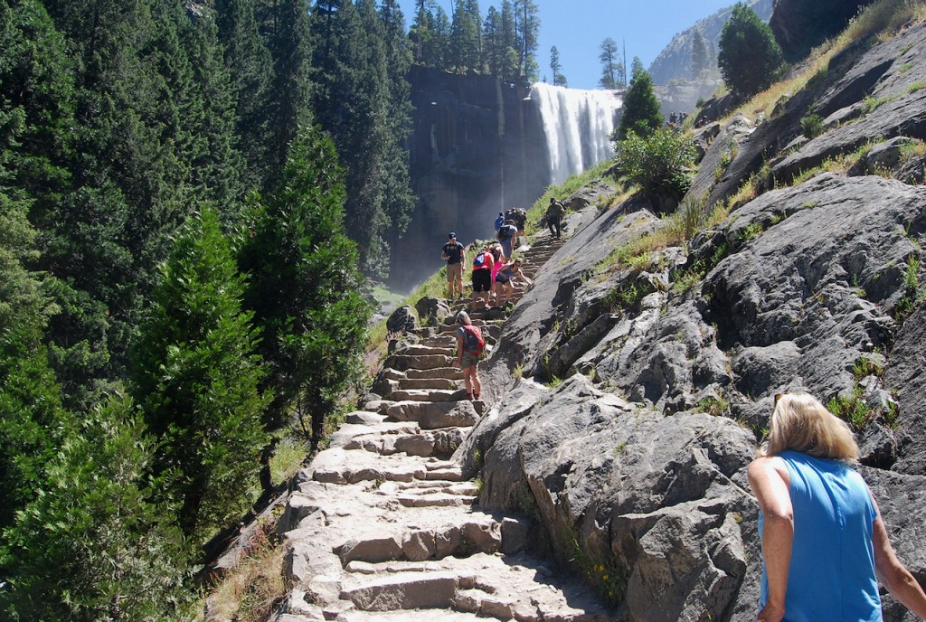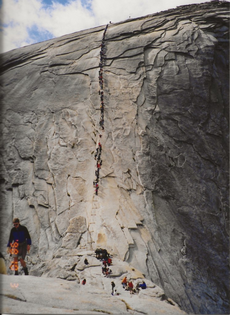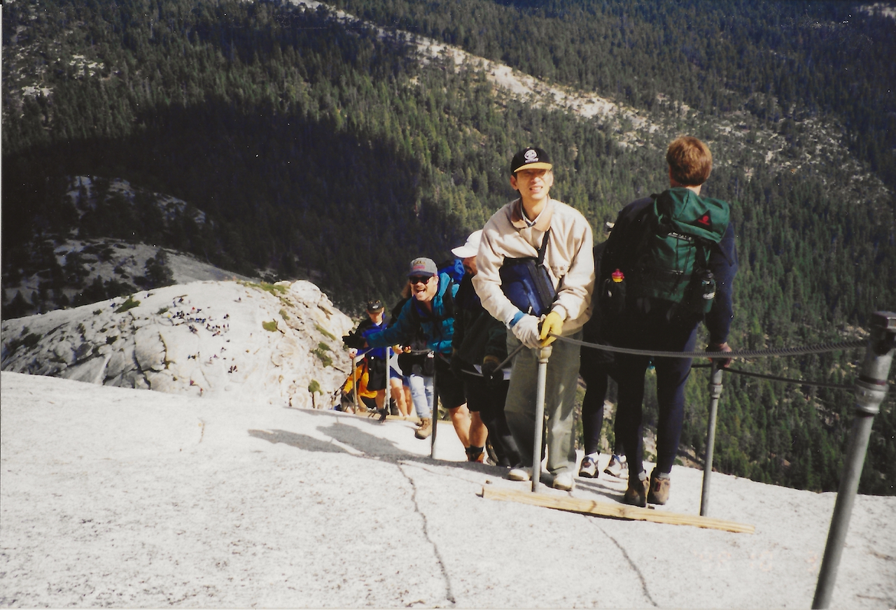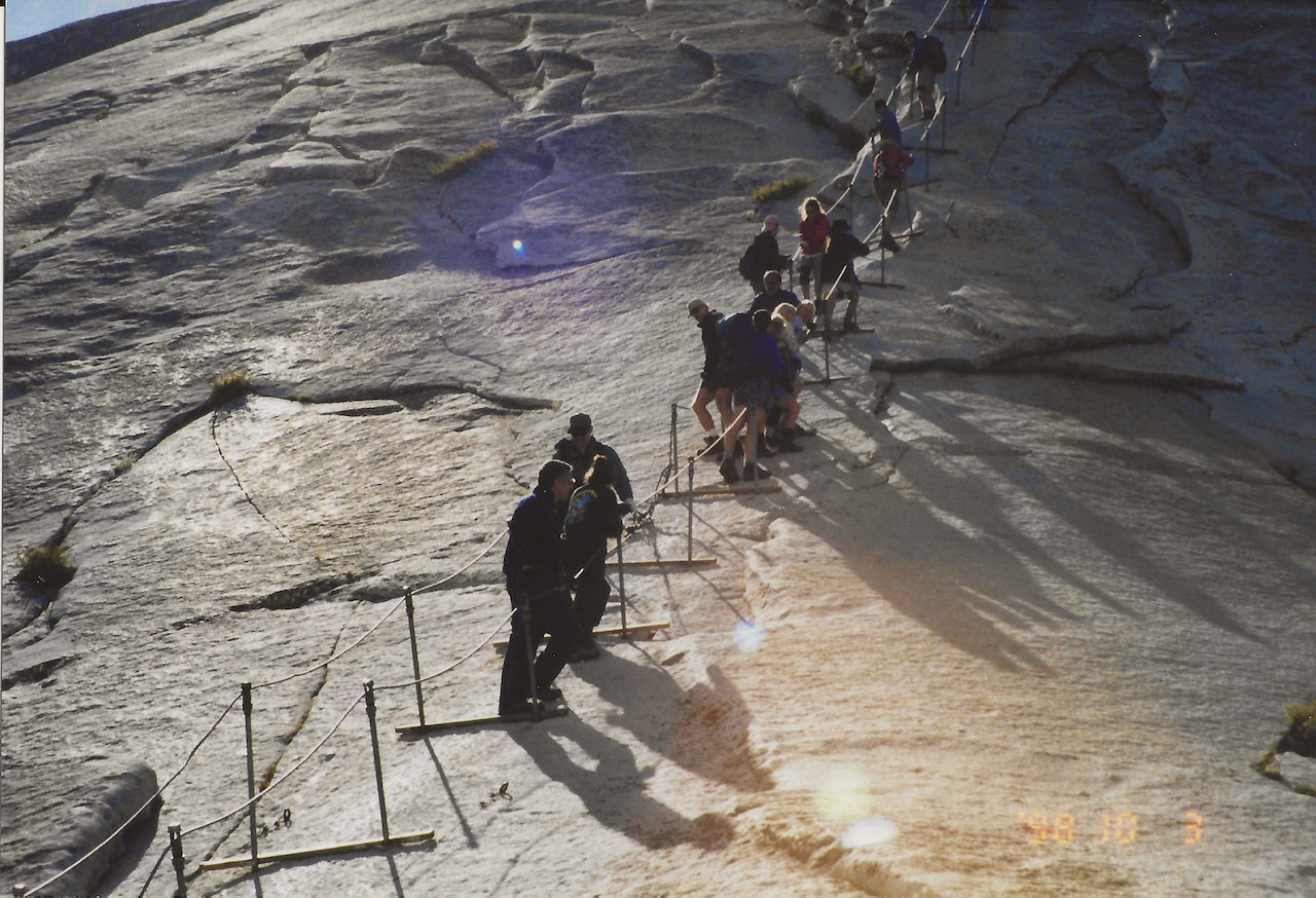 We met Norm and his wife Colleen (who would just hike to the Vernal Falls bridge), likely around 7am and hiked the ¾ miles to the John Muir Trailhead (this distance at the end of the day would be longest mile of my life). We kept up a constant pace as all of us were in good shape at the time and although we were moving quickly, found ourselves in the early afternoon not yet ascending the cables, a worrisome prospect as we wondered if we’d have enough time to return to the cars before it got dark.