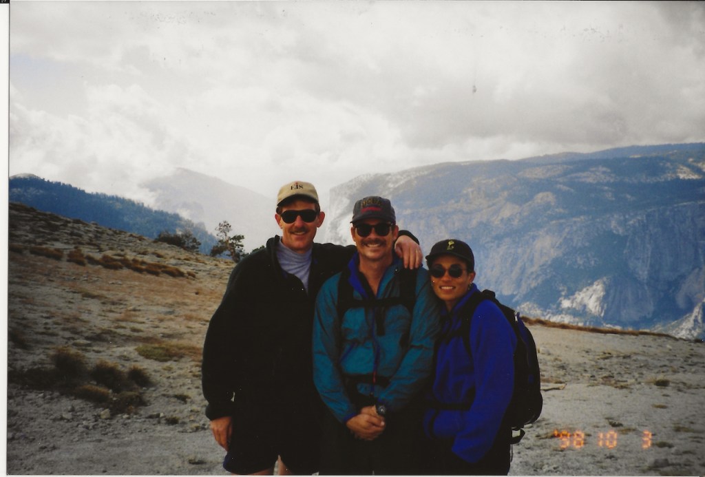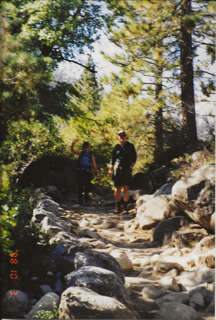 A year later starting in the summer, of 1998 we’d visit twice as we celebrated my graduation from grad school at Loyola Marymount University. We camped with Irene, Ric, Debra and others at a campground just off Tioga Road over the 4th of July weekend. We’d L.A. late in the day and it being pre-cell phones and not knowing exactly where the group was camped, we ((Joanna, Jessica, niece Kristen and myself) elected to spend the night in Bakersfield before continuing on. We picked a motel at random and when we woke up the next morning, realized we were in a sketchy part of town. As nothing happened perhaps St. Christopher was keeping watch over us?