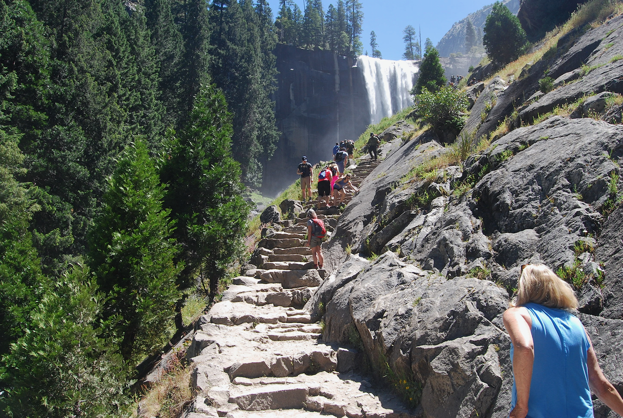 In 2018 we embarked on a three-month road trip from Charlotte and along with other stops along the way, we arrived in Yosemite in June with Jessica and Kris where we met Kim and Marty, again lodging in the tent cabins, warm spring weather making sleeping a bit more pleasant. Joanna, Kim, and I would hike the Mist Trail to the top of Vernal Falls, always exciting and more so with a full river creating considerable moisture. We’d enjoy a memorable meal at the Ahwahnee and much walking as the valley shuttle system was completely overwhelmed, leaving folks stranded at each stop for long periods of time as they waited for space on the bus.