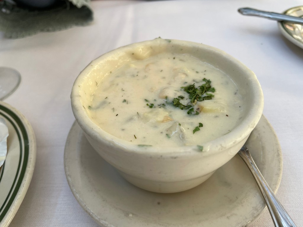 The same gentleman who had taken our reservation the night before was at the front desk and when we announced ourselves advised us that he didn’t have us down that night for a table. After some going back and forth it all worked itself out and we were soon seated in a narrow room off the main dining area, bracketed by windows high in the wall that let in copious amounts of sunshine.