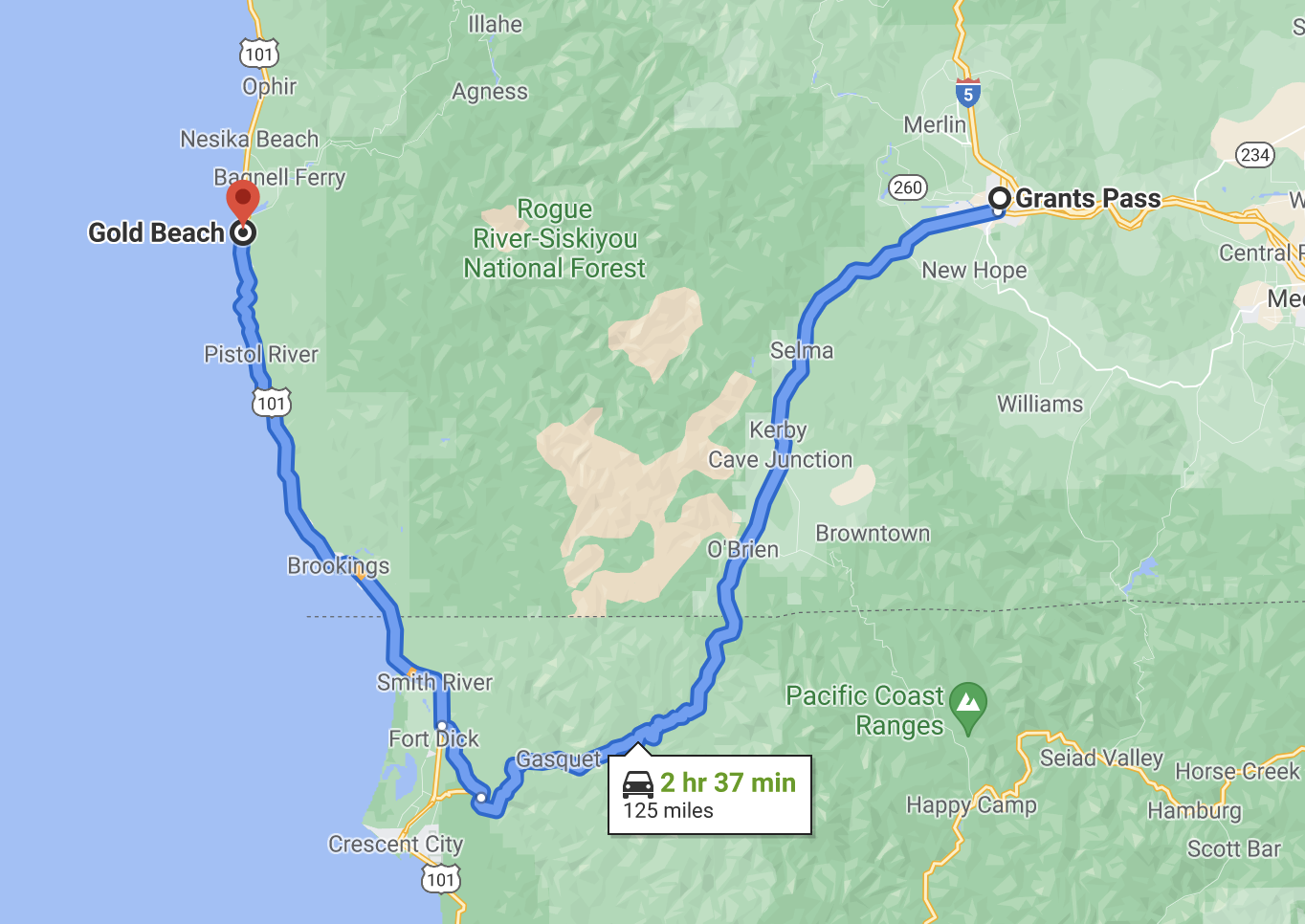 We took off for the three-hour drive to Gold Beach along highway 199, passing through numerous small towns and lush forest until hitting the coast and what would begin a week of spectacular and unique vistas that never fail to amaze. We stopped once at a viewpoint that involved driving down a dirt road on a steep hill to catch sight of an impressive stand of rocks jutting out of the surf.
