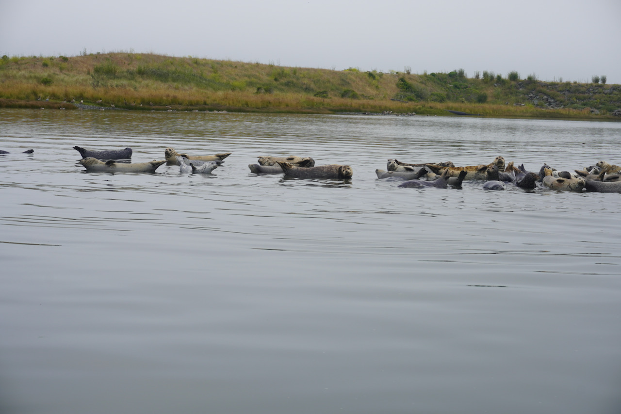 This voyage would be different as we started out on a misty cool morning (the temperatures would not get above 65 degrees our entire time on the coast) that required light jackets. We soon left the fog behind and as the day warmed up to an eventual inland high of around 90 degrees, we enjoyed the scenery and excellent narrative provided by our pilot who also was the guide.