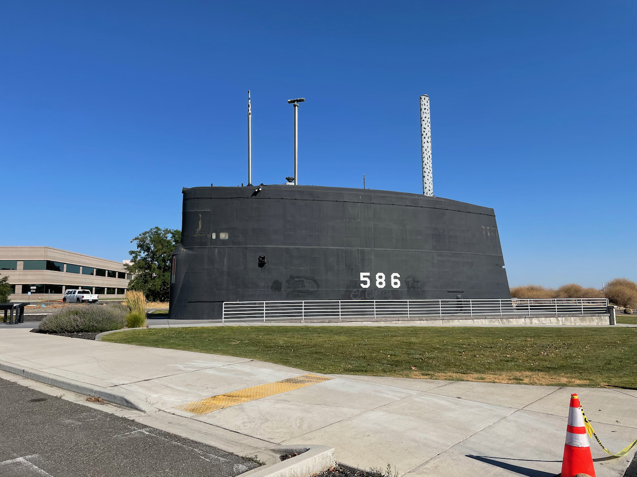 We reached the northernmost end of the path to find the conning tower of the U.S.S. Triton, the first vessel to execute a submerged circumnavigation of the Earth in Operation Sandblast in 1960. Triton accomplished this objective during her shakedown cruise while under the command of Captain Edward L. “Ned” Beach Jr. She was the only member of her class and had the distinction of being the only Western submarine powered by two nuclear reactors.
