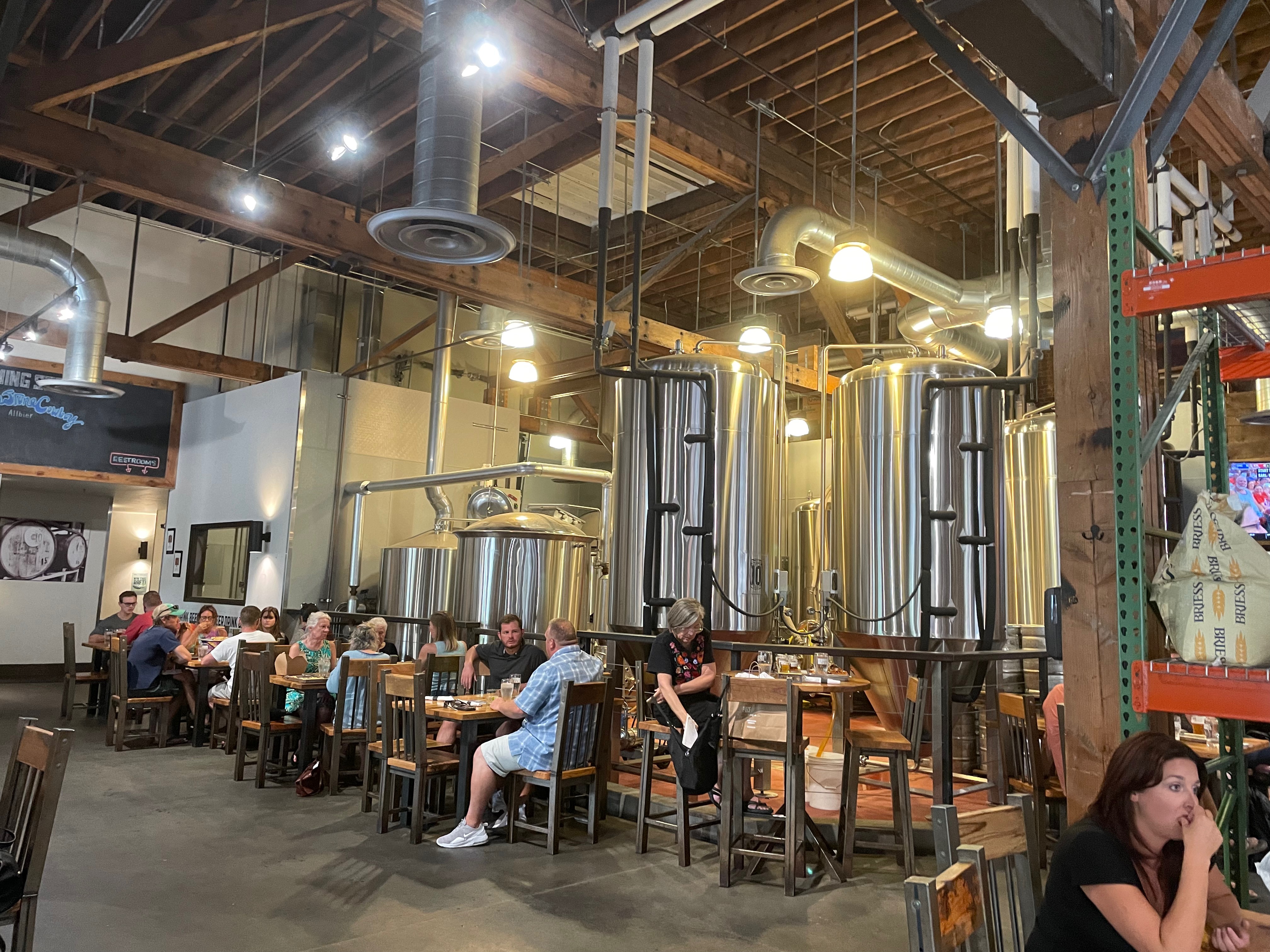 Ever resourceful, we did a quick search and found an outlet of 10-Barrel Brewing, one of our favorite beers from Bend and made our way downtown to check it out. The dining room is big and airy and so we felt comfortable sitting without masks. Joanna ordered a Pineapples in Paris, a dry-hopped Saison with hints of pineapple and I went for a Maibock to accompany our entrees.