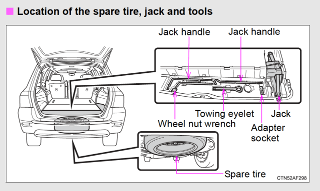 They couldn’t figure out how to drop the spare tire from underneath the car and started to dismantle the mounting system, so sensing disaster in the making, I grabbed our owner’s manual and checked out the instructions to discover that one lowers the spare by accessing a mechanism through the storage compartment at the rear of the car. Once apprised of the correct procedure, they quickly got the flat tire off and the spare on, using an impact wrench to tighten the lug nuts, as we would find out later is not the best method for correctly installing that part.