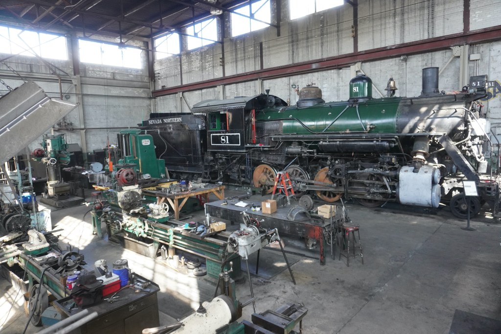 The museum collection includes four of the railroad’s original steam locomotives, an electric locomotive, and several diesel-electric locomotives, as well as a collection of maintenance equipment and numerous historic freight and passenger rail cars.  Two of the steam locomotives, #40 (the official State Locomotive of Nevada) and #93, are in operation in regularly scheduled events throughout the year; with #81 currently under restoration to operating condition.   The museum also maintains an extensive fleet of its original rolling stock, including passenger cars, wood-side box cars, ore cars, and work trains, all dating from the 1910s.