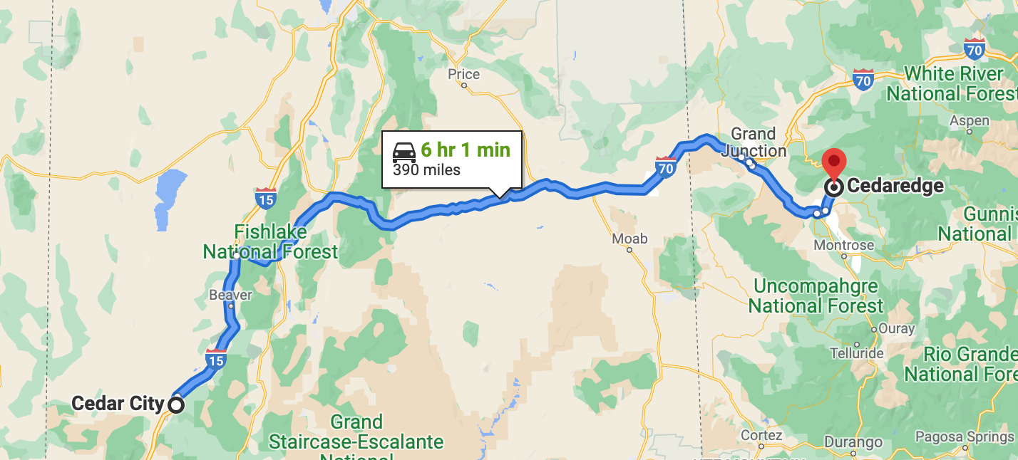 We left home on Tuesday the 28th headed for Doug’s place in Cedaredge, a drive we’d split into two days by stopping in Cedar City, Utah, leading to some confusion about what town we’d be spending the night in. We’d be staying at the Best Western Town and Country near the center of town, just a few miles from the interstate. Dinner, wouldn’t be far away at Chef Alfredo’s, highly rated in Trip Advisor for what would be an outstanding meal.