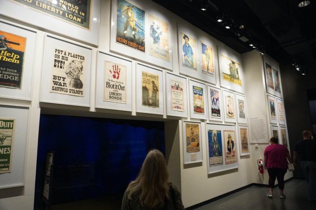 This visit was warm but overcast and parking not far from the entrance, we walked to the front doors which are made from ornamental bronze, and entered the first-floor lobby, whose walls are finished in stone quarried in Kasota, Minnesota while its corridor and the grand stairway are finished in travertine imported from Italy. We started our visit with a 20-minute introductory video about the war, its causes, duration, and outcomes. We left the auditorium after the movie to enter the exhibit space across a glass bridge above a field of 9,000 red poppies, each representing 1,000 combatant deaths.
