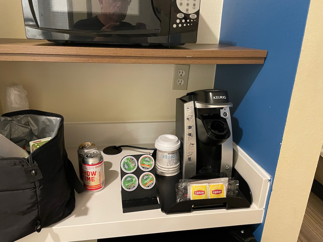 And so, we got on the interstate hoping the car would hold together at speed and sure enough, it did OK except for a steering hitch if you turned the wheel all the way left or right. We continued without further incident and finally arrived at the Holiday Inn Express Absecon where we would spend two nights and get to see Joanna’s longtime friend Jan. This would be our first stay at this particular offering of the IGH chain and we would come away impressed with its large room, updated furnishings, functioning work desk (so often the distance between the desk chair and the desk requires a booster seat) and wonder of wonders, a Keurig coffee maker. Huzzah!!