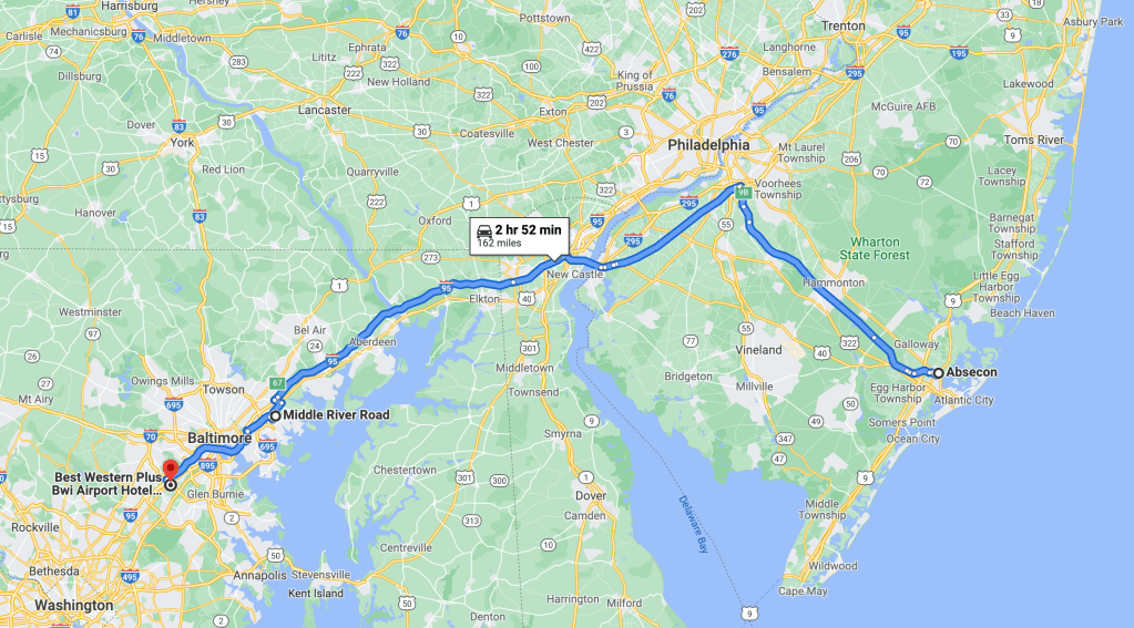 Our time together soon came to a close and we moved down the road to check into the Best Western Plus BWI Airport, the same place we stayed when we last visited in 2017 (https://3jmann.com/2017/04/21/philadelphia-part-six/). From there it was a quick 20-minute drive to Jed’s apartment in Windsor Mill, where we got to check out his new digs (he’d moved since our last visit) and then climbed into his car for a ride to Jimmy’s Famous Seafood, our dinner choice for the night.