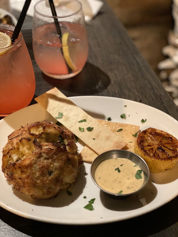 Seated at a high top near the door, I started with a cold Stella Artois which would accompany my grilled Rockfish with a Mediterranean treatment accompanied by a nice sized dish of garlic mashed potatoes. Joanna ordered the Market Price Crab Cake, broiled with Bay Sauce and a side of Broccolini. Both dishes would be excellent, the Rockfish mild and complimented by the treatment, the broiled crab cake was large and crab-heavy, with big lumps of meat bound together by just enough filler, a mix of mustard, mayonnaise, seasoning and breadcrumbs, to make them stick together.