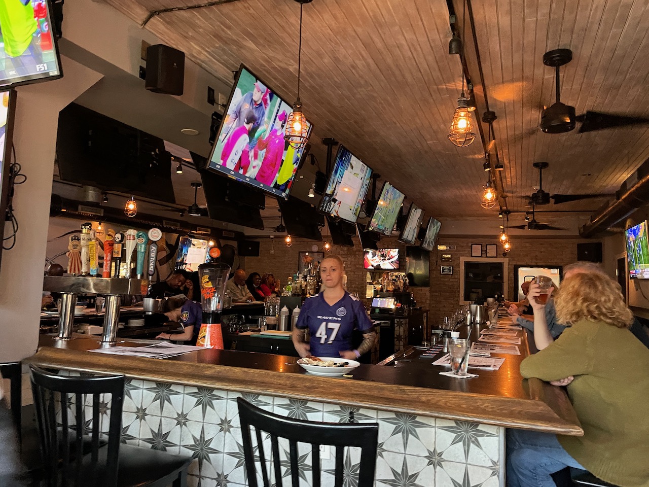 Located just over a mile from Baltimore’s port in a gritty suburb, it was opened in 1974 by Demetrios “Jimmy” Minadakis and is now run by his two sons, John and Tony. It’s a very large property and being a Saturday, I thought we’d have to wait but Jed skillfully led us to the eating area in the downstairs bar, a much cozier space, it’s walls lined with photographs of family, friends, and local athletes.