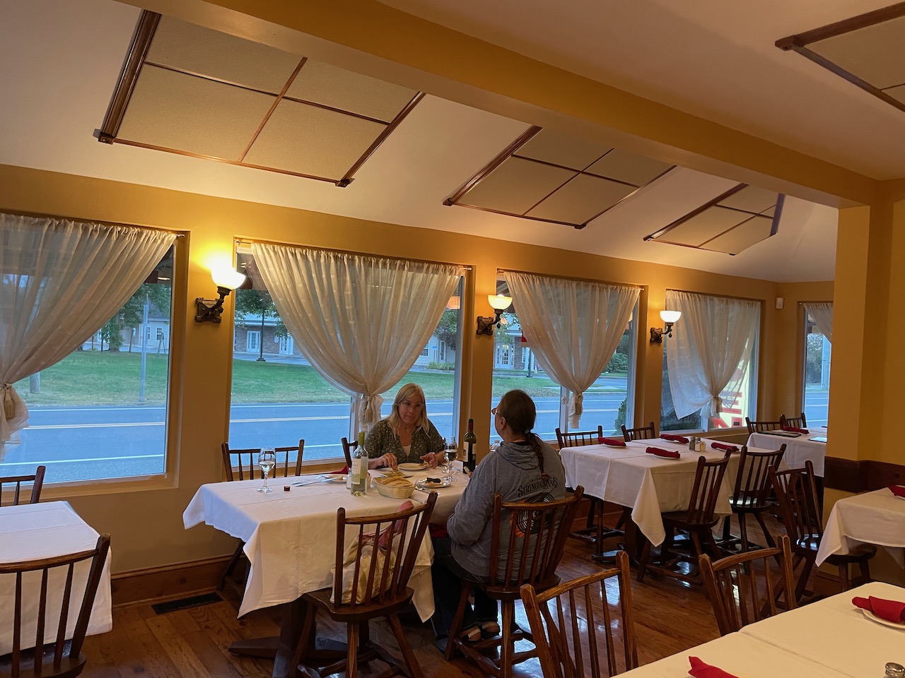 For entrees, Jan went with the Falafel Platter, Joanna the Pasticcio, and I the Lamb Souvlaki platter, seeking a return to that month we spent in Greece in 2017. Portion sizes were generous and quality excellent except for my lamb, which was a little tough and some of it overcooked. The cucumbers and tomatoes in the accompanying salad were top notch though, again reminding me of how fresh these ingredients were when we ate on any of the Greek islands.