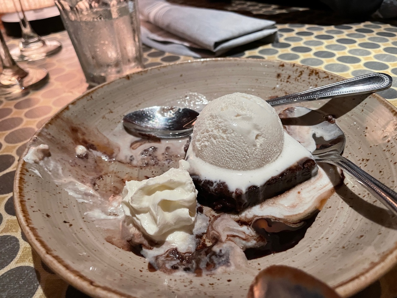 We finished with a sinfully good Callebaut Brownie with Vanilla Ice Cream, Chocolate Sauce & Caramel. The restaurant has their own pastry chef, and it shows in all their desserts, which we had left just enough room to split between the four of us. And just like that, we completed our stay in Charlotte and prepared for the next phase of our trip, returning to Durham and hopefully a positive outcome there.