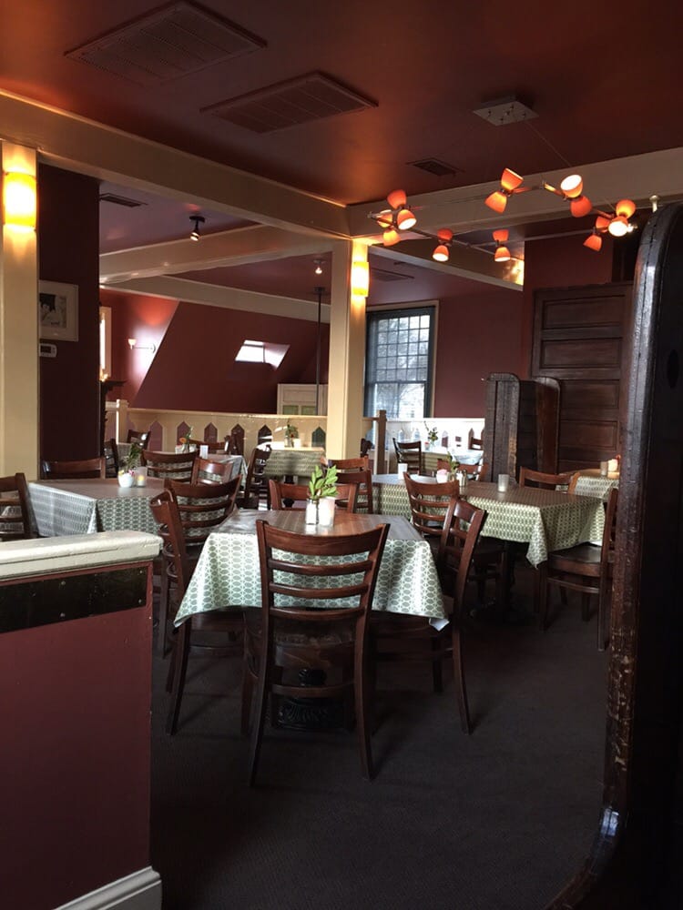 We all arrived at about the same time and were soon ushered to a cozy booth in the upstairs dining room. Joanna and I started with a glass of Albarino white wine apiece and the Baked Marinated Vermont Goat Cheese (with Roasted Garlic, Sun Dried Tomatoes, and Your Mom’s Baguette) appetizer for the table.