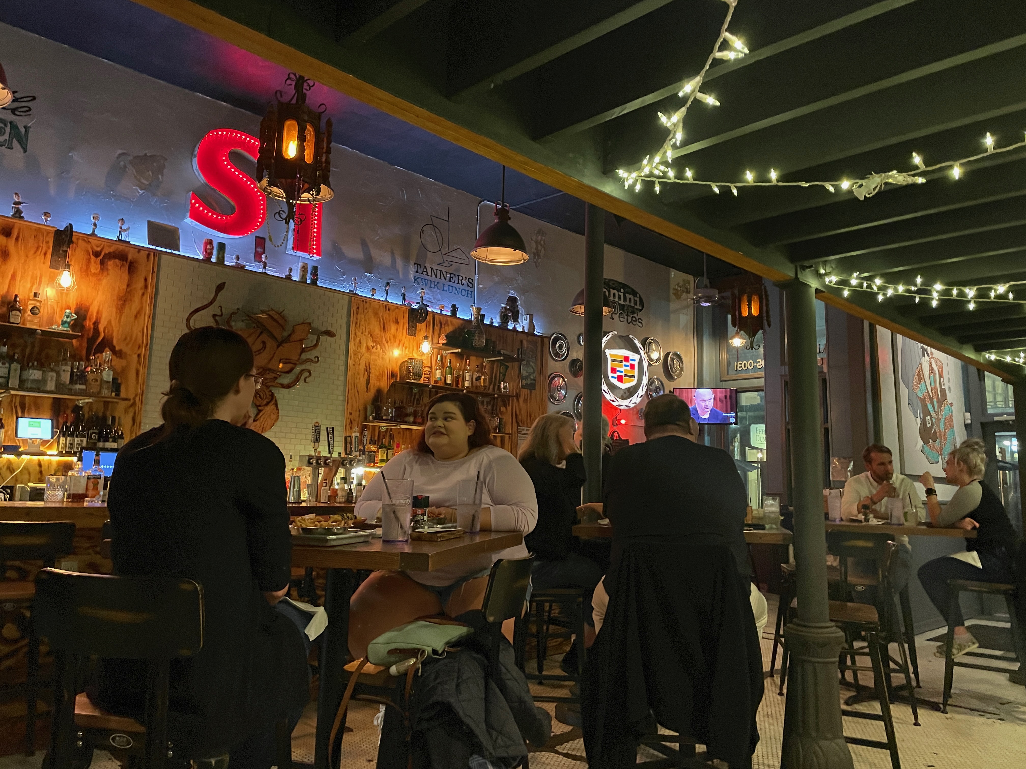 Lodging for the next two nights would be at the Best Western Plus Daphne Inn, just off the I-10 where we unloaded the car and killed time for an hour or so before driving across the bay to meet longtime friends Leigh and James, who many of you are now familiar with from our many stops in Mobile. Tonight, we’d be dining at Squid Ink Eclectic Eats and Drinks, a smallish establishment in the older part of downtown.