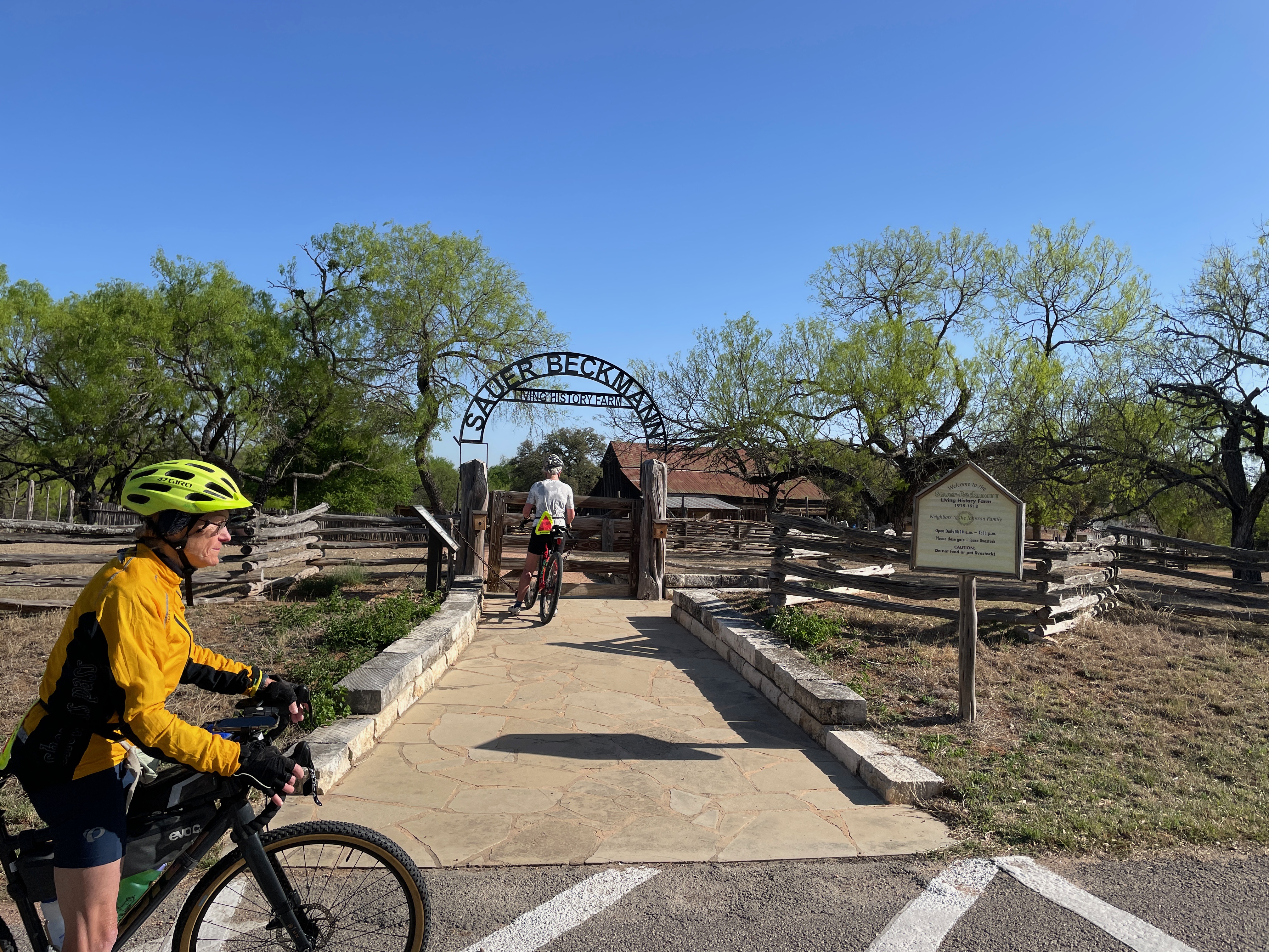 The first part of the ride was fairly flat and with no wind to hinder us, a joy to behold as we made our way to LBJ State Park and Historic Site, home to a herd of bison, a herd of long horn steers and the World War I-era Sauer-Beckmann Farm, a Living History Farm where park rangers wearing historical clothing demonstrate farming methods of that era. As it wasn’t open yet, and honestly when one has forty or more miles to ride, stopping for a couple of hours at a place like this, no matter how interesting it might be, usually isn’t in the cards.