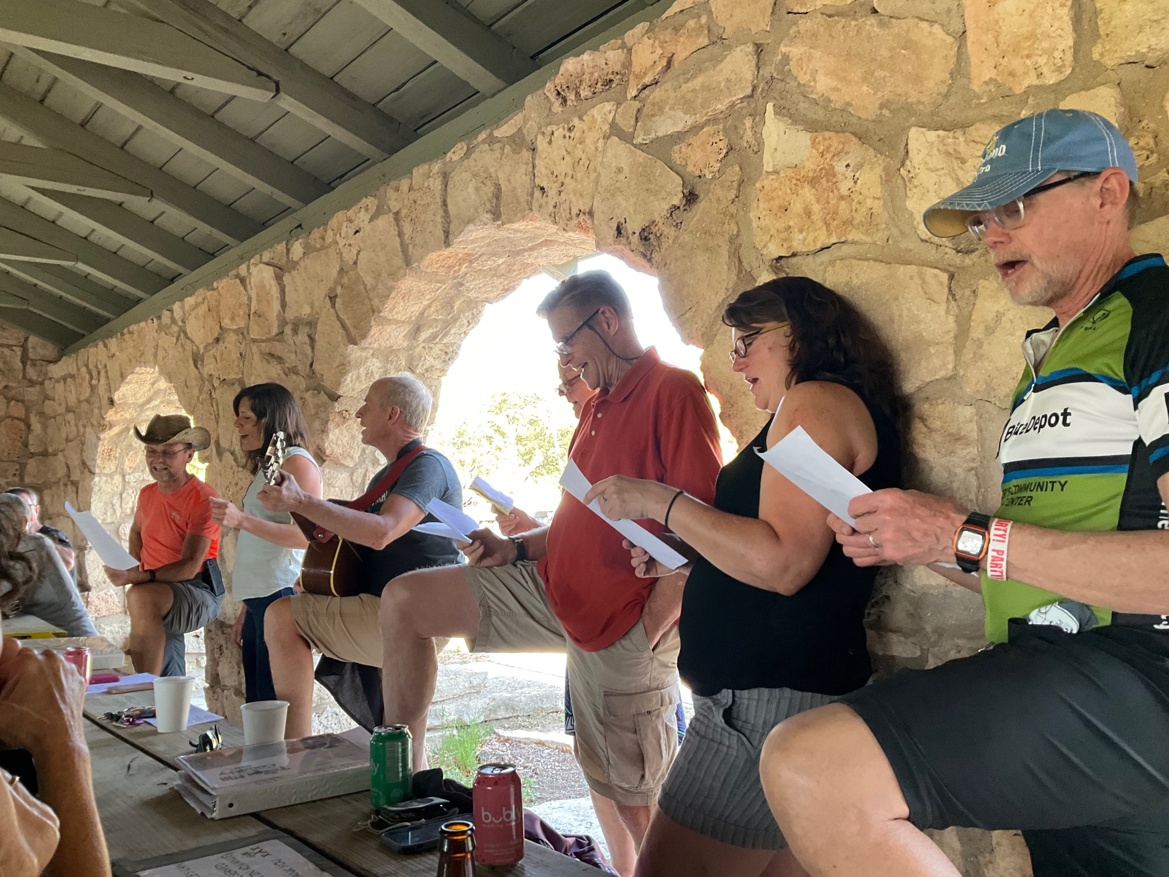 It being early and somewhat hungry, we split an order of the Southwest Eggrolls (crispy shells containing a mixture of spicey black beans and corn) along with an Independence IPA for Joanna and an Oktoberfest for me. It would hold us well for the rest of the afternoon as we arrived in camp at Blanco State Park, setting up the tent close to the luggage truck and the shelter where we would eat our meals.