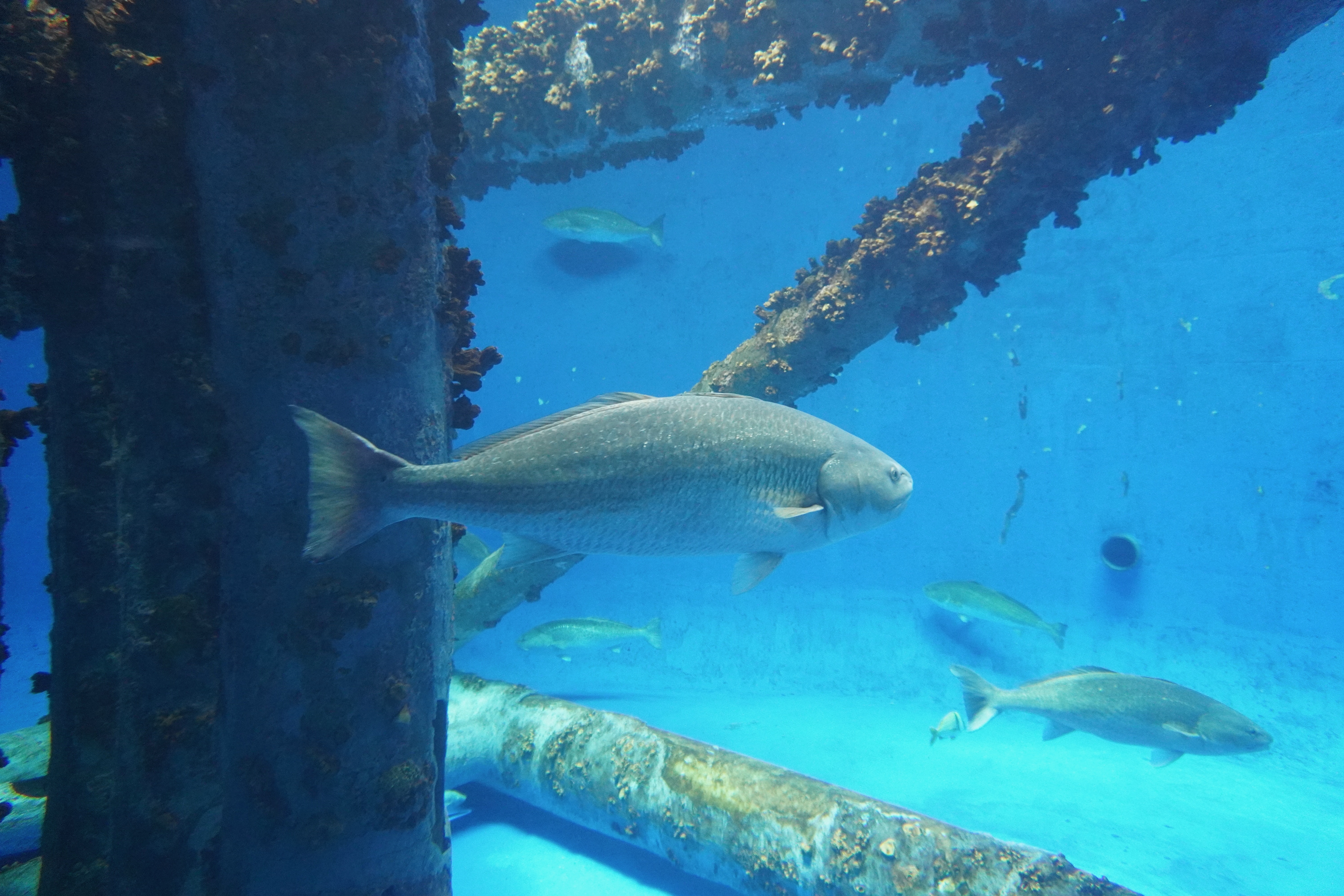 And so it would go for the better part of three hours as we took in the Coral Reef, Dolphin Bay (400,000 gallon saltwater exhibit housing four Atlantic bottlenose dolphins), Eagle Pass (All of the raptors featured in this exhibit were rehabilitated at the Texas State Aquarium), Tentacles (jellyfish and sea nettles), Islands of Steel (This area recreates the habitat formed around an oil platform), Stingray Lagoon (Visitors can touch Atlantic and cownose stingrays), and Tortuga Cay (rehabilitated and un-releasable sea turtles).