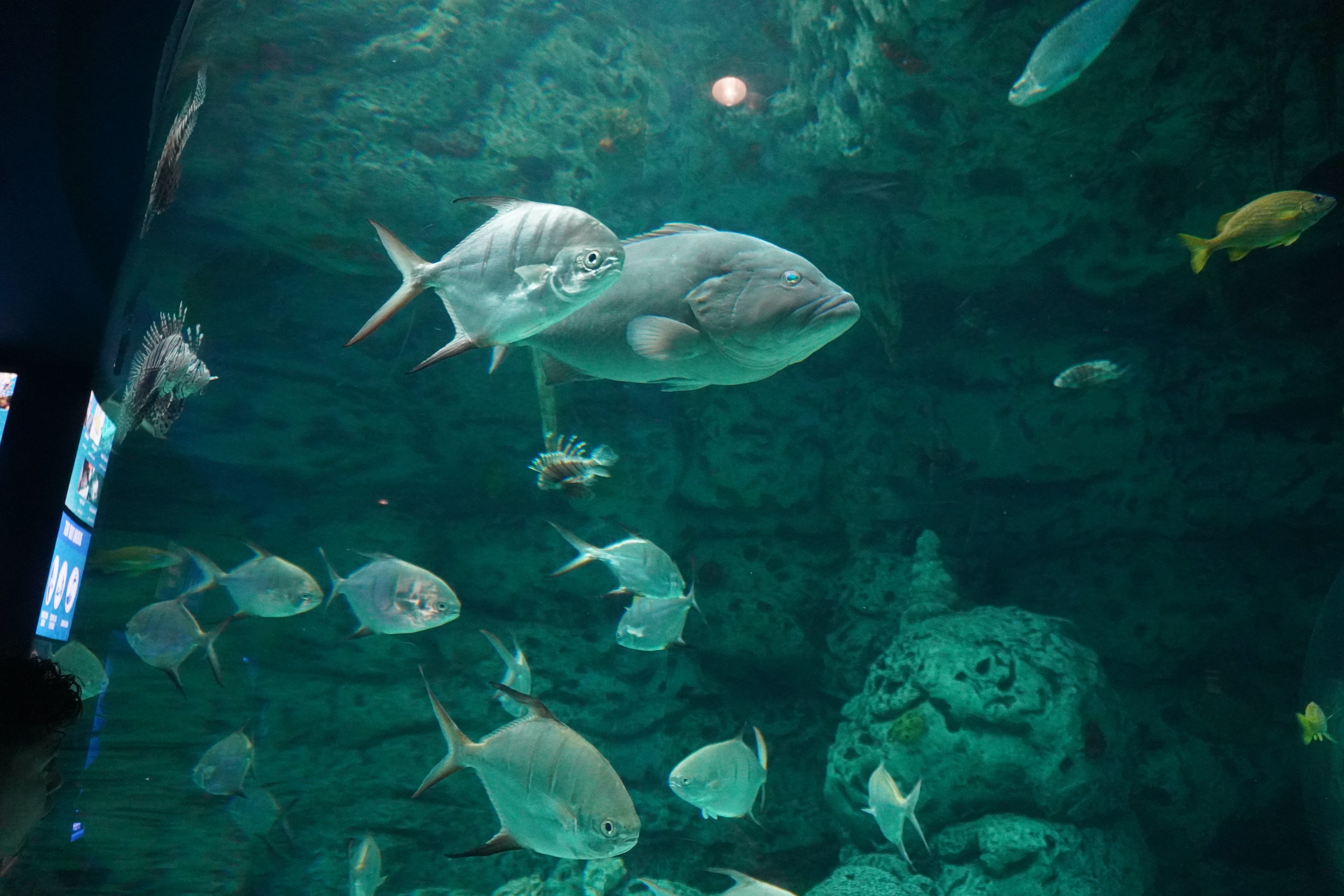 There was a line at the ticket counter when we arrived, but then again it was a Saturday morning and so to be expected. It was a foreshadowing of the waiting we would do once inside in order to enjoy the displays in what would be a crowded venue. We started with one of the larger exhibit areas, Caribbean Jungle which features flamingos, free-flying birds, a two-toed sloth, and other species in a naturally lit jungle habitat and the connected H-E-B Caribbean Sea, a 400,000-gallon aquatic exhibit containing sandbar sharks, stingrays, and other species.