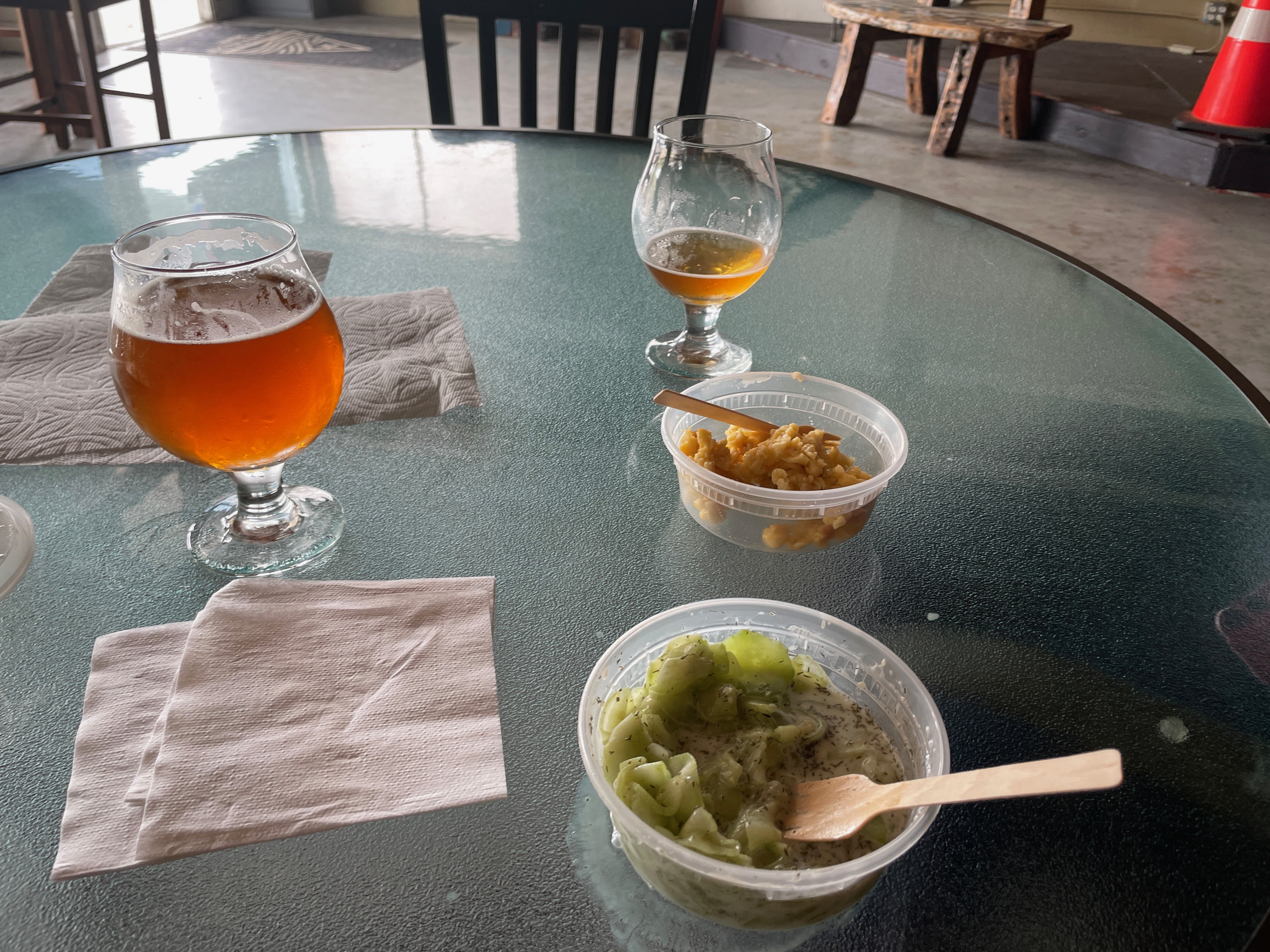 We left the house and it being later in the afternoon, figured we’d head over to Devil and the Deep for a beer or two and to get that currywurst. Sitting with our beers, I went over to the corner lot to get the food only to discover that it being Saturday, Around the Corner had moved to another location, as we would discover later, the other brewery in town.