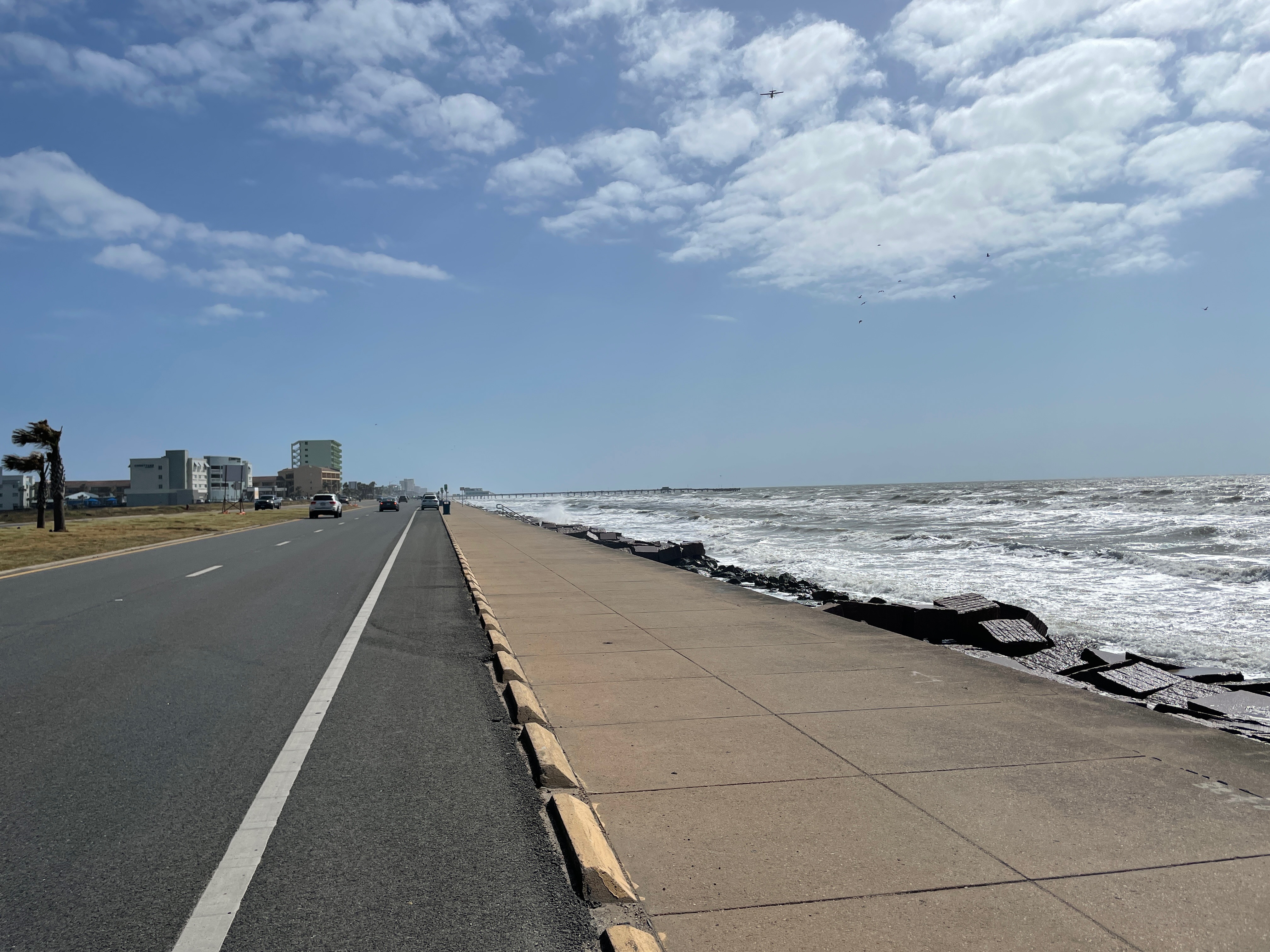 One there knows that when looking at the ocean, if you turn right, you are heading north. Here though, Galveston Island runs east to west and the beach faces south towards the Gulf; its initially confusing but one soon gets the hang of it.