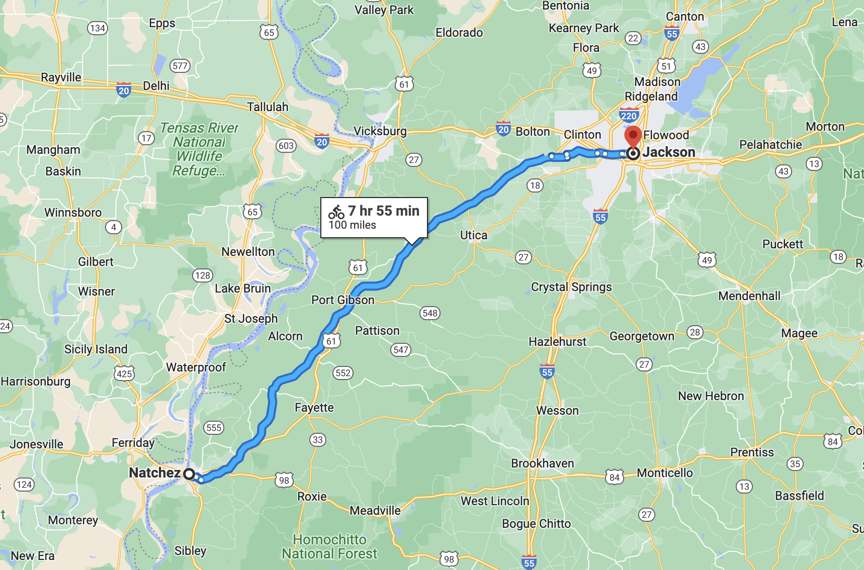 Today we’d be heading up to Jackson, Mississippi for a couple of nights and I would ride a section of the Natchez Trace on my bike while Joanna followed in the car. The Trace is a historic forest trail which extends roughly 440 miles from Nashville, Tennessee, to Natchez, Mississippi, linking the Cumberland, Tennessee, and Mississippi rivers.
