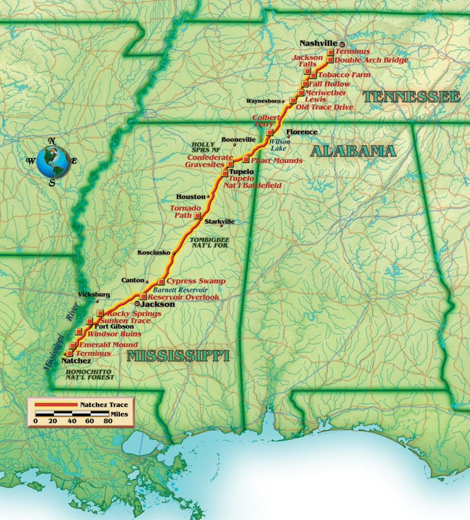 Natchez Trace: https://www.nps.gov/natr/index.htm