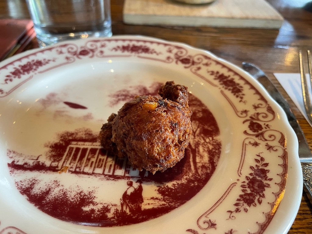 And so, on an off chance we parked outside of Ida Claire (get it? I declare?), one of our top choices and checked to see if they could squeeze us in and sure enough, after a reasonable wait, we were seated inside their large dining room. Joanna started with a Demogorgon (banhez mezcal, pineapple, lime, agave, midori, orange bitters, soda, and tajin rim) while I opted for a Bitter Sisters Hissy Fit Marzen Lager, both refreshing and just the right touch for what would be a very nice dining experience.
