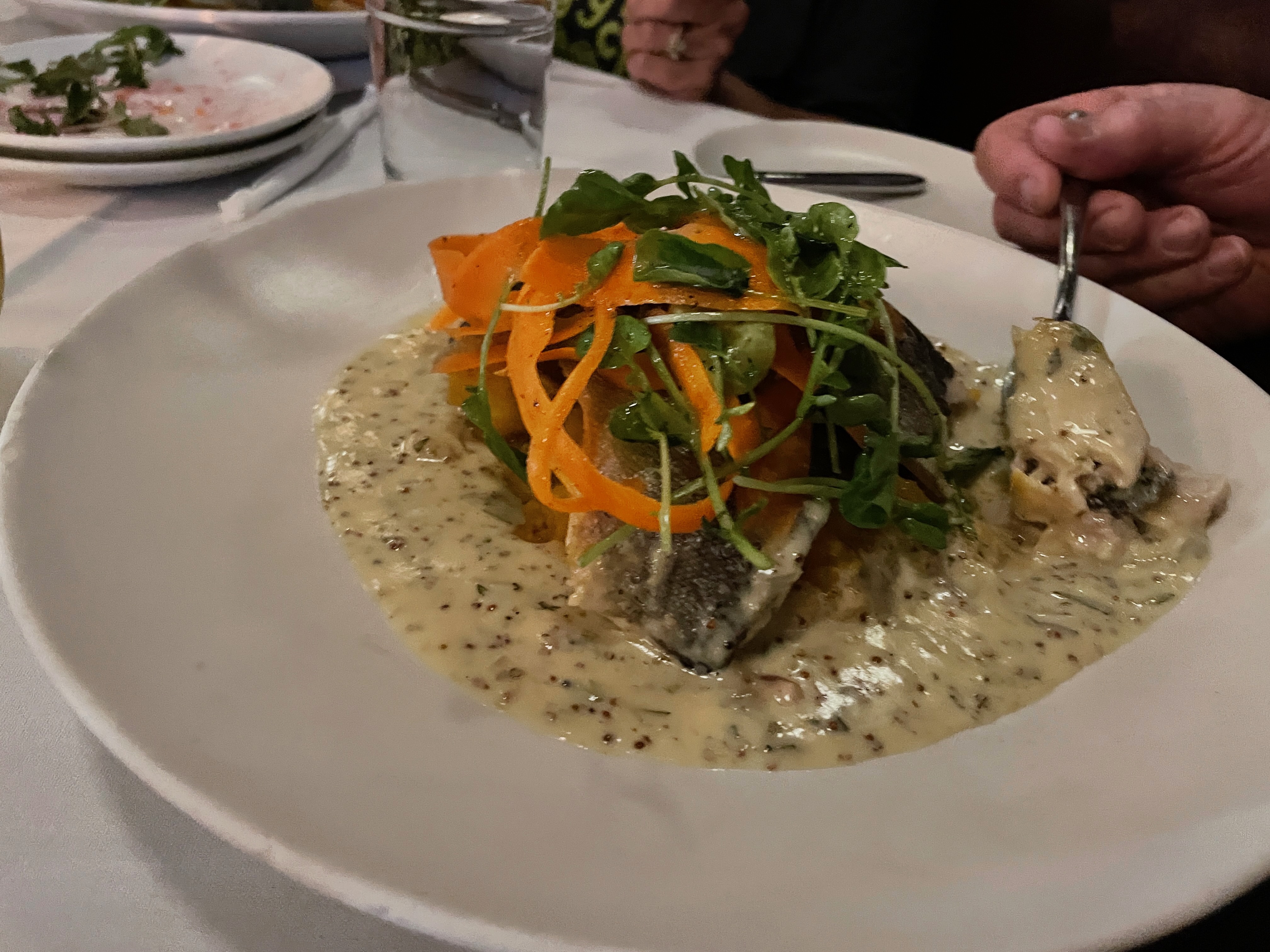 To eat I had an interesting dish, the Spinatschnitzel (Specialty pork schnitzel stuffed with ham, spinach and quark cheese) with spaetzle on the side while Joanna ordered a fish based special of the day, which while quite good cannot be identified as we didn’t get a copy of the receipt and it has been weeks since that meal occurred. We returned to the Airbnb, which would fortunately cool down that night after a ferocious thunderstorm and stayed up late, spending time with folks we dearly love.