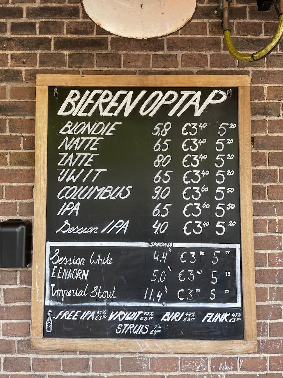 The brewery was founded by Kaspar Peterson, a former musician, in 1985 and was one of several small breweries that opened in cities around the Netherlands in response to consumers’ dissatisfaction with beer brewed by the larger companies. They brew twelve standard beers and three seasonal beers, besides limited-edition beers. We ordered one apiece and settled into a picnic type table in a side room and watched those around us drinking and consuming what appeared to be good looking food.