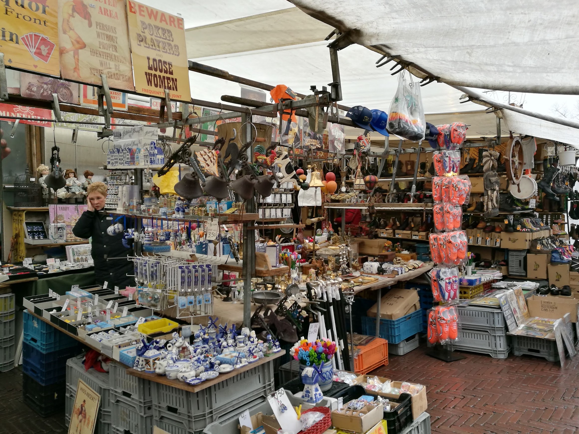 Joanna and I finished up around the same time and after a brief stop in the gift shop, we walked just a couple of blocks to the Waterlooplein Market, Amsterdam’s oldest flea market and reputed to be the oldest in the Netherlands. A Jewish market was created here in 1893, the biggest and the most important market of its kind in Amsterdam. It ended in 1941 with the persecution of Jews by the Nazi’s but after World War II, it was reborn, first as a general bazaar, then in the 60s and 70s as a trading place connected with the youth culture.