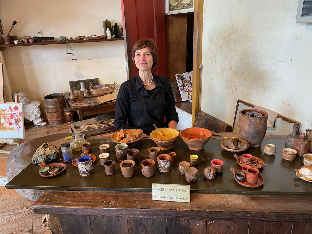 After touring the lower quarters, I arrived at the floor containing Rembrandt’s studio and while there observed a demonstration of paint making. During Rembrandt’s time, paint as we know it didn’t exist, that is an artist couldn’t just pop into their local art store and buy whatever they needed. Almost all paint was made by the artist using common materials known to produce the color and texture required for the type of painting, or art, being created. It was a fascinating glimpse in a time gone by.