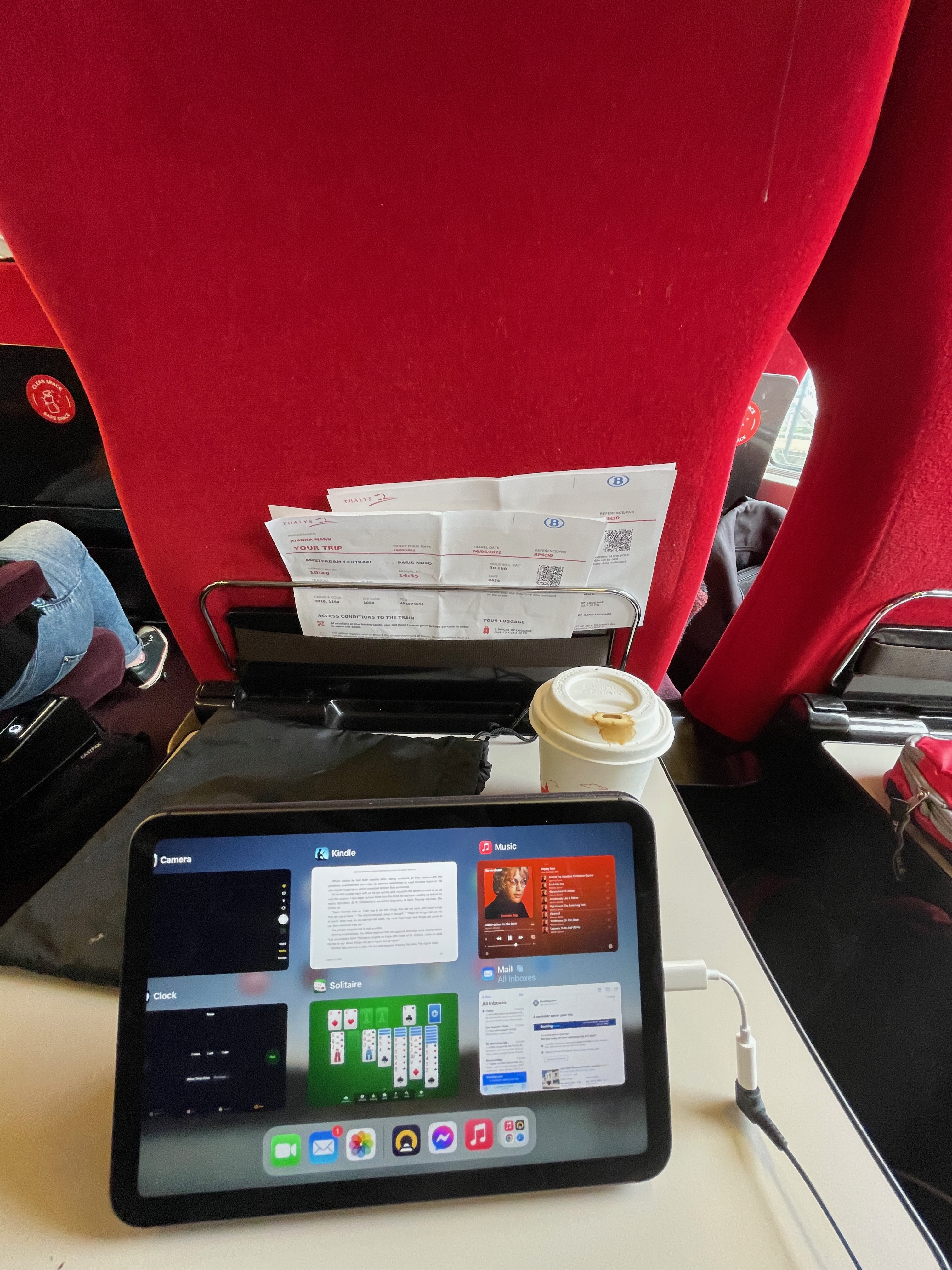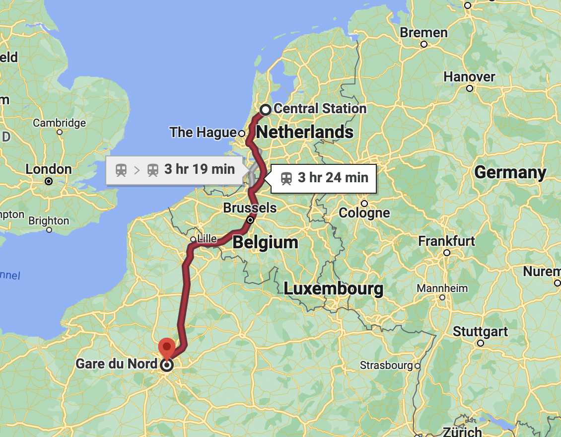 We walked to Centraal Station and quickly identified our train for Paris, found our seats and settled in for the three-and-a-half-hour high speed ride to the Gare du Nord station. Traveling on European trains is usually a delight with comfortable seats, plenty of leg room, charging ports in abundance, and depending on the train perhaps a food/snack car from which one could purchase refreshments. Most trains run on smooth tracks unlike our experience when we rode Amtrak from Los Angeles to Oakland. The vibration from the tracks that time made it difficult to watch or read from a tablet if placed on the pull-down tray. Not so with European trains.