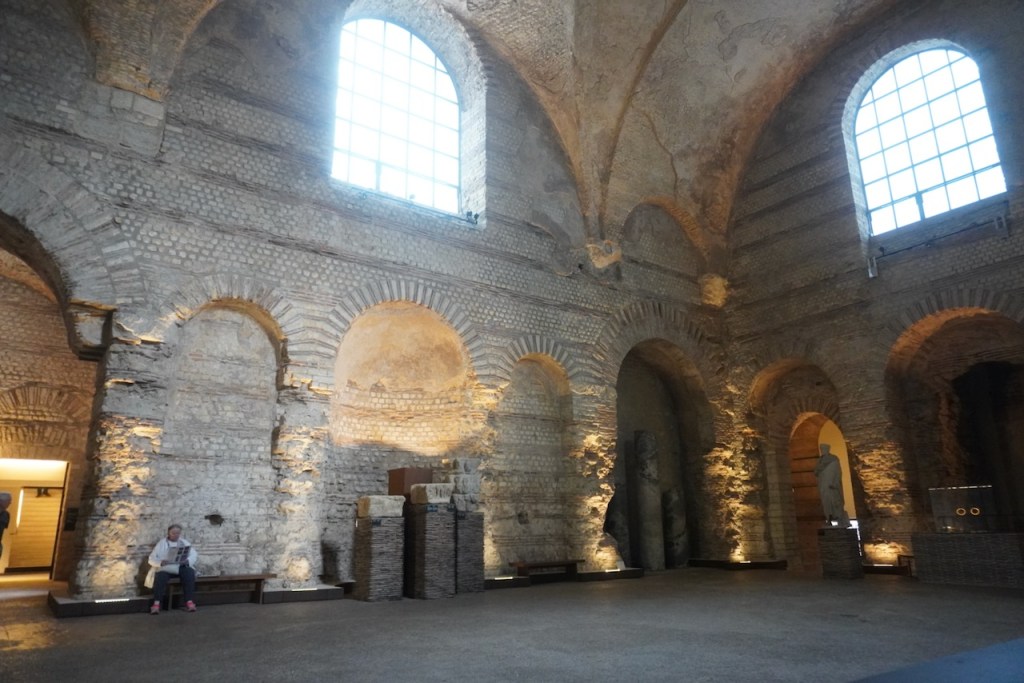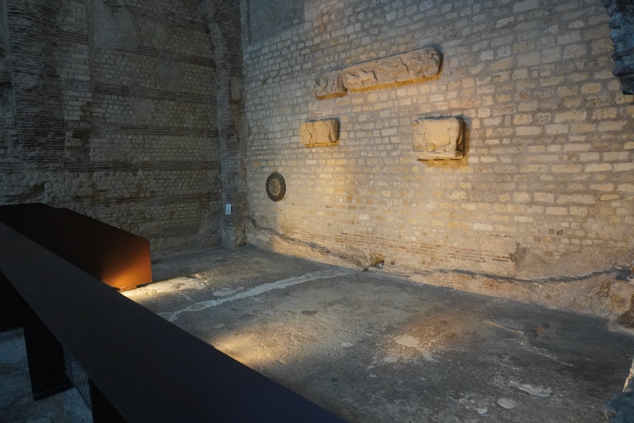 The first and perhaps most impressive area you see when you enter are the baths, which constitute about one-third of a massive bath complex that is believed to have been constructed around the beginning of the 3rd century. The best-preserved room is the frigidarium, with intact architectural elements such as Gallo-Roman vaults, ribs and consoles, and fragments of original decorative wall painting and mosaics.