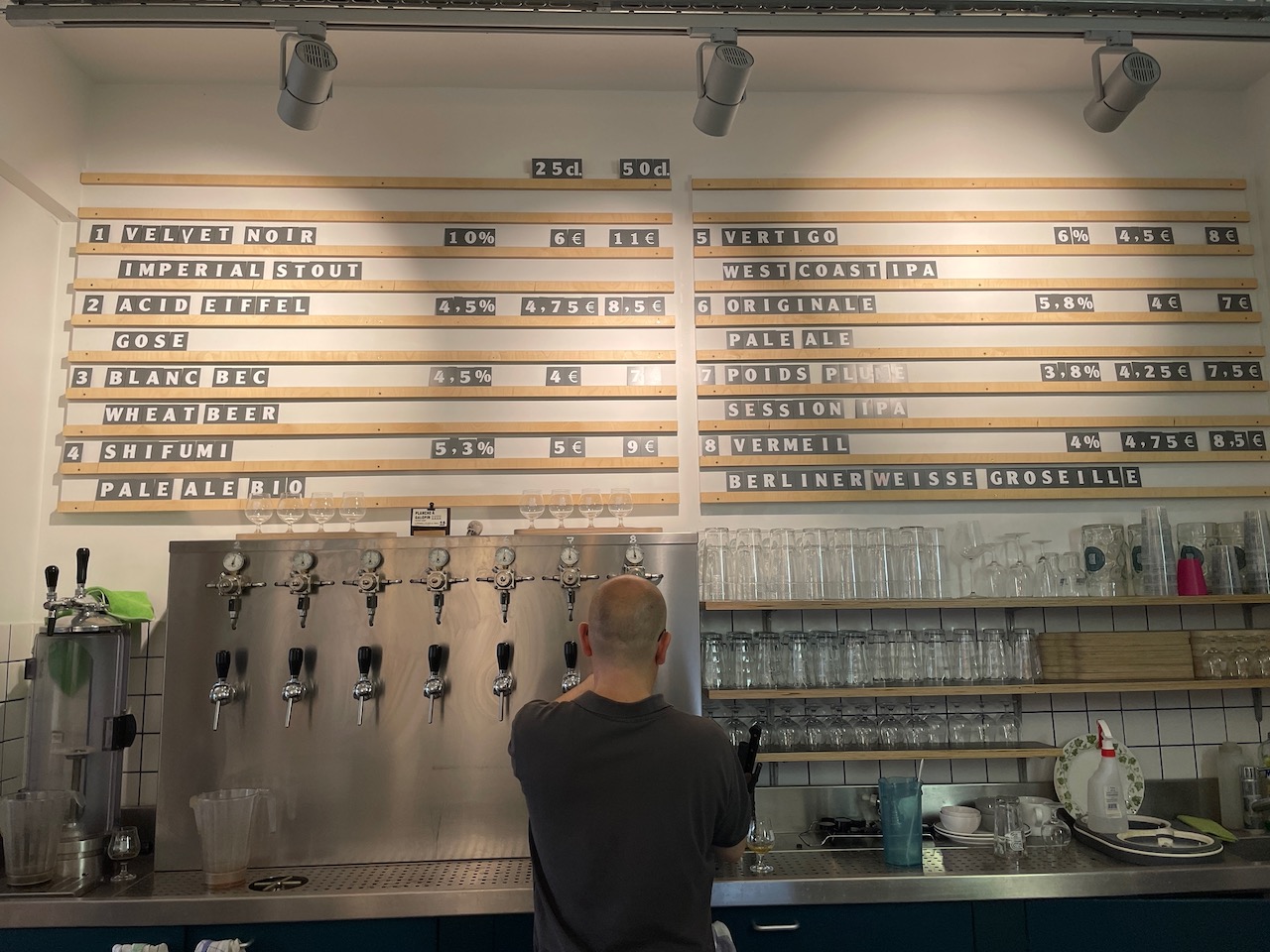 On the way we hopped off in order to walk to Maison BapBap, a Parisian craft brewery, reinforcing yet again the growth of the craft beer movement in Europe since our last visit in 2017. We approached the bar and ordered a beer apiece, a Vermeil (Berliner Weisse Groseille) for Joanna and the Orginale (Pale Ale) for me. Groseille is French for Currant, and one could see it in the pink tinge it brought to her beer.