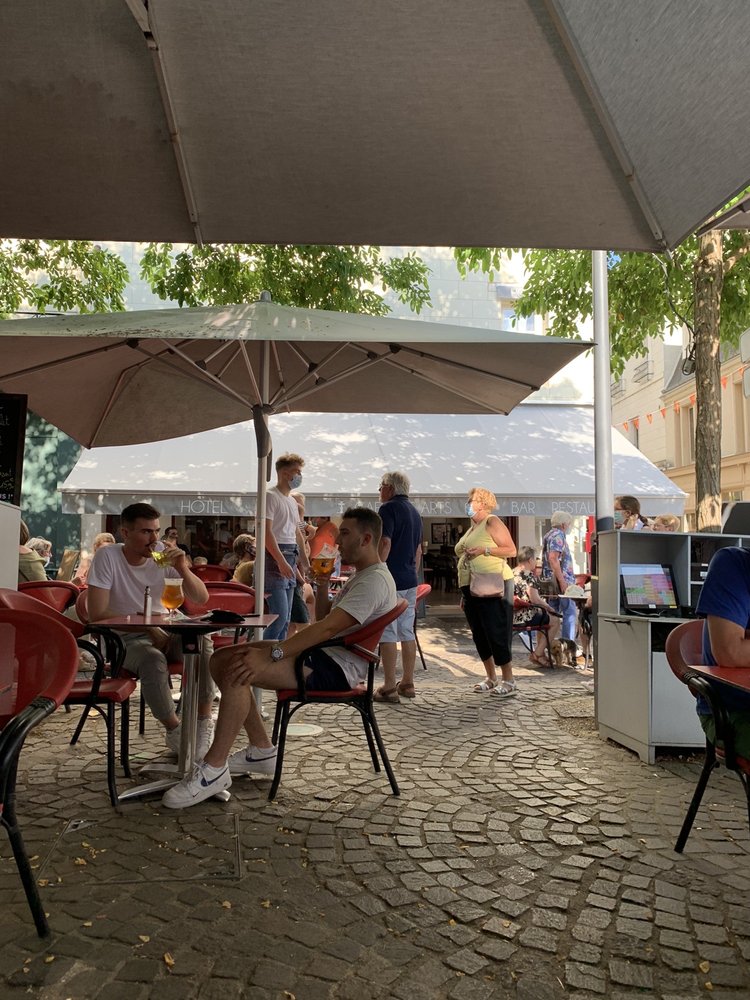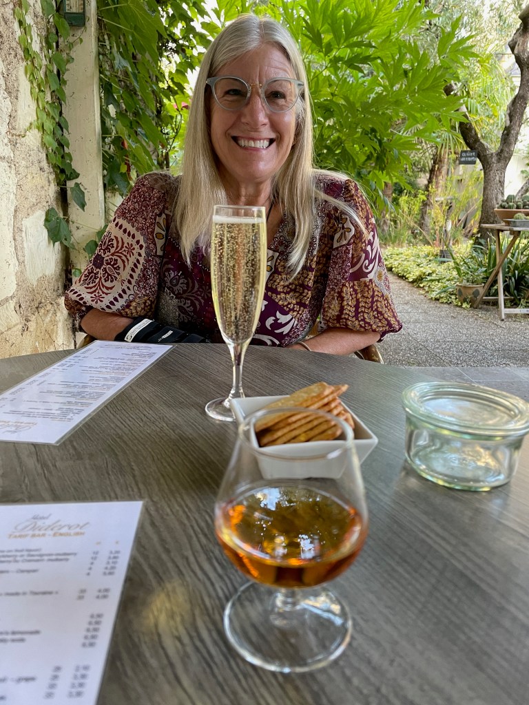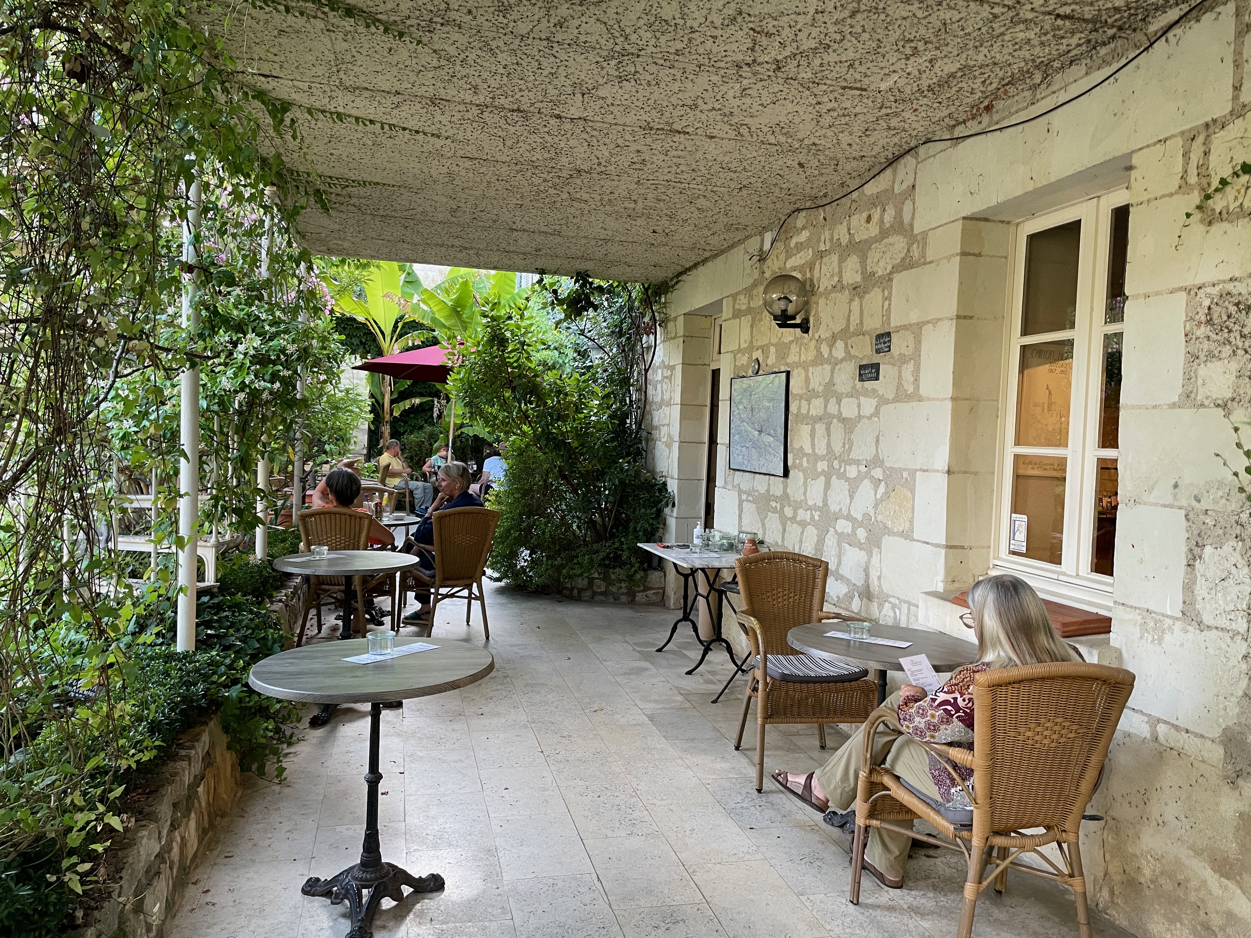With some time to kill we returned to the Diderot to sit outside on the shaded patio and enjoy an after-dinner drink, for Joanna a Cremant de Loire and for me a Calvados Pays d’Auge. It was a great way to finish up our three-night stint in the Loire Valley, one we had to cut short by a day when a day or so earlier, as we reviewed the schedule we would need to meet to get to Francois’s place in Montpellier, we concluded that it would be difficult to manage successfully.