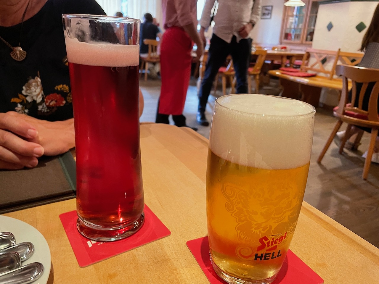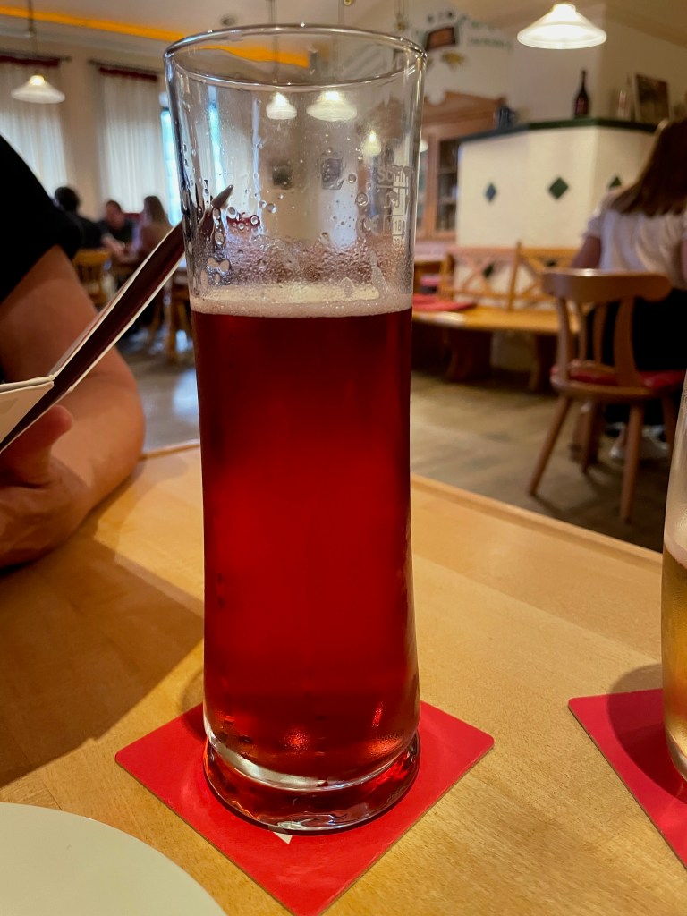 We started with a round of beers, a Helles for me and a Radler Himbeere for Joanna (a radler is a low alcohol beer usually consisting of half beer (something light like a pilsner or wheat beer) and half lemonade or grapefruit juice).  Originating in Germany, radler roughly translates to cyclist.